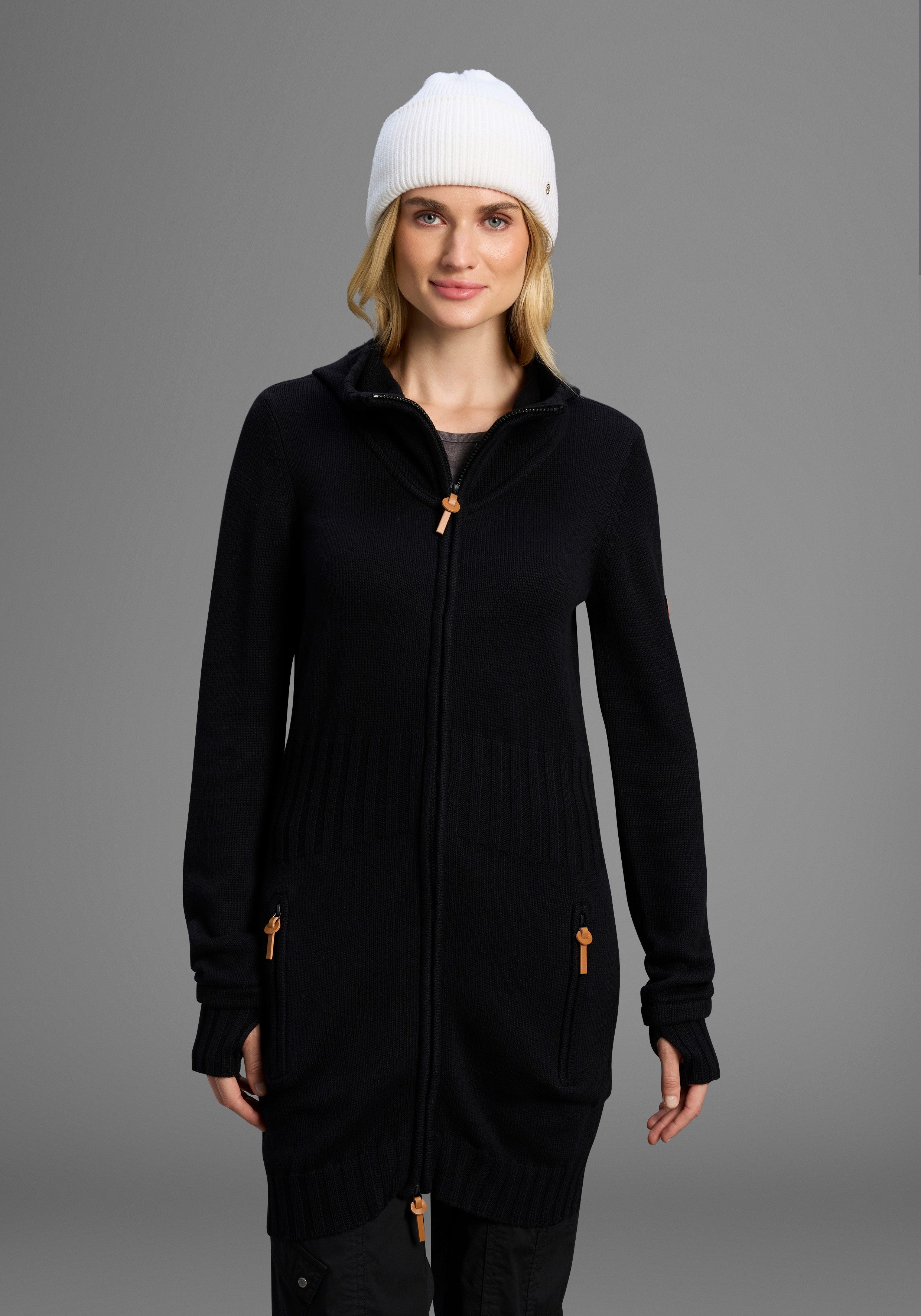 Mit Bluse kombiniert für die Arbeit oder bequem für entspannte Stunden — die Damen-Kapuzenstrickjacke von KangaROOS ist eine gute Idee für deine Outfits!
