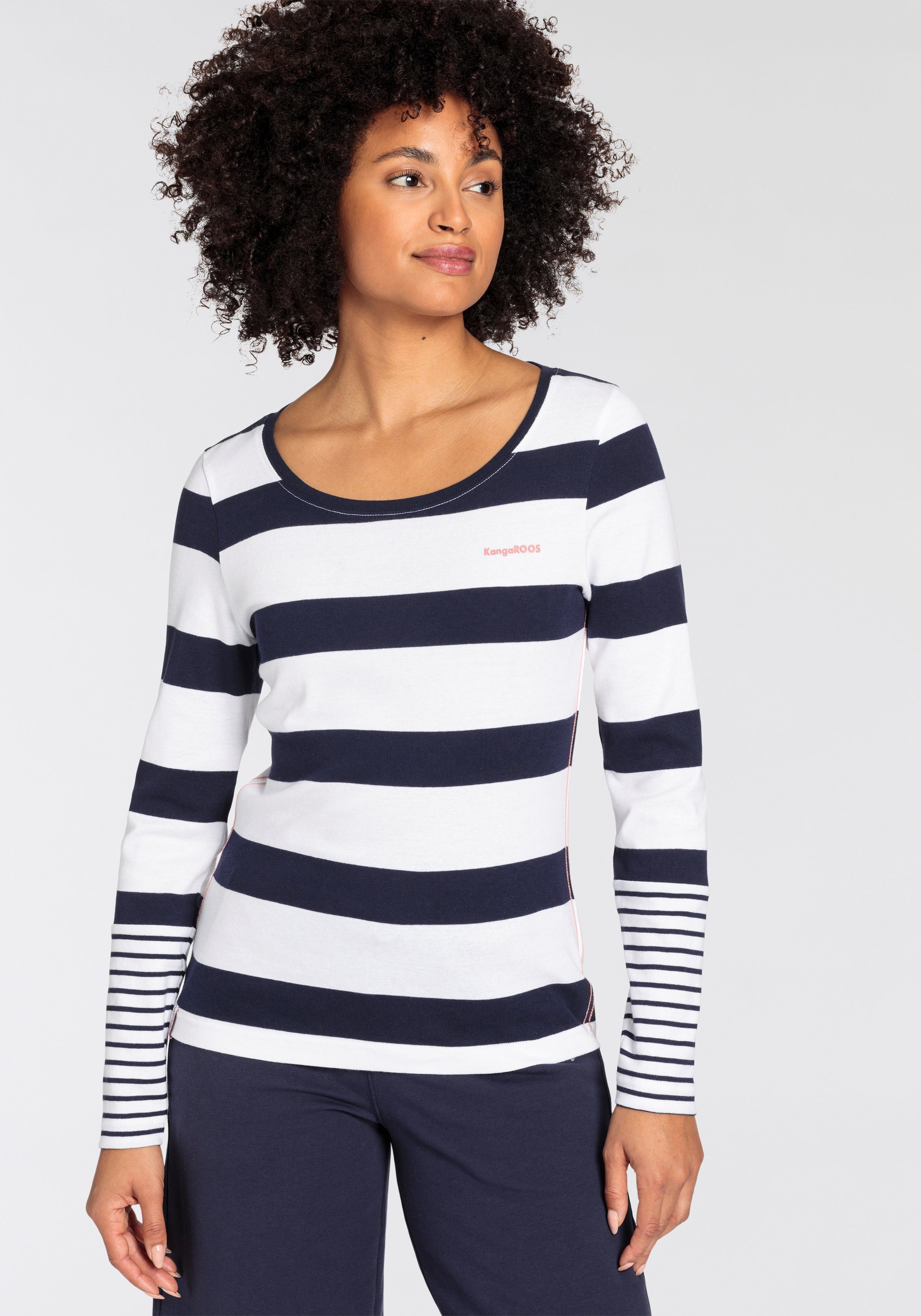Schau dir das Langarmshirt von KangaROOS mal genauer an. Dieses Shirt hat einen Rundhalsausschnitt und ist hüftbedeckend sowie körpernah geschnitten, sodass dein Oberkörper dezent zur Geltung gebracht wird.