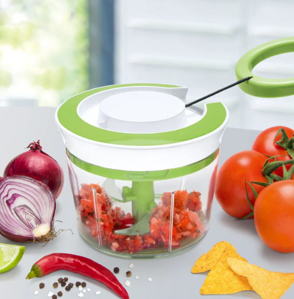 Der multifunktionale manuelle Zerkleinerer Multicut ermöglicht einfaches Zerkleinern, Mixen, Verquirlen und Pürieren von Lebensmitteln. Dieser Küchenzerkleinerer, der ohne Stromanschluss verwendet werden kann, kann leicht beim Camping, im Büro oder zu Hause eingesetzt werden.