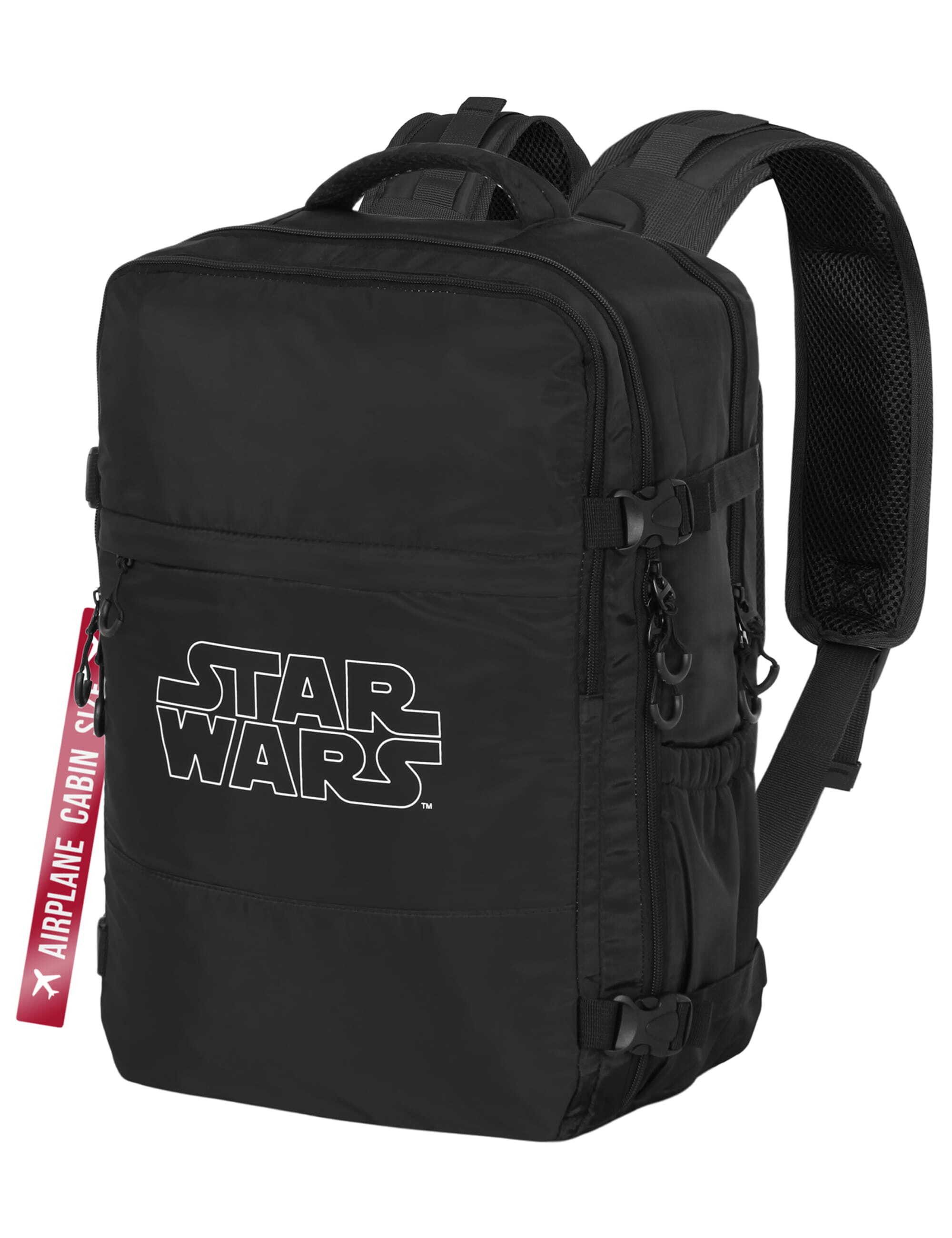 Mit diesem stylischen Rucksack im klassischen Look zeigen Fans ihre Leidenschaft für die weit, weit entfernte Galaxis. Das dezente Design mit Logo-Print passt zu jedem Outfit – perfekt für Reisen oder Alltag! Dieser Handgepäck-Rucksack überzeugt mit einer Vielzahl durchdachter Funktionen, die das Reisen spürbar erleichtern. Entwickelt, um den Handgepäckbestimmungen der meisten Fluggesellschaften zu entsprechen, besteht er aus wasserfestem, ultraleichten Material und schützt den Inhalt zuverlässig vor unerwünschten Wettereinflüssen. Das großzügige Hauptfach ist mit Kreuzspanngurten und einer separaten Reißverschlusstasche aus Mesh ausgestattet und bietet ausreichend Platz für Kleidung, Hygieneartikel und Schreibutensilien. Zwei weitere 180°-Fächer erleichtern das Packen und bieten einen schnellen Zugriff auf weitere Reiseutensilien. Ein gepolstertes Laptopfach schützt Geräte bis 15 Zoll, während die wasserfeste Fronttasche Dokumente sicher und trocken hält. Zusätzliche Seitenfächer bieten Platz für Trinkflaschen oder kleine Utensilien. Für einen angenehmen Tragekomfort sorgen die verstellbaren Schultergurte, die durch ein robustes Gurtband zusätzlich verstärkt sind. Vier seitliche Kompressionsriemen ermöglichen eine flexible Volumenanpassung. (C01967)