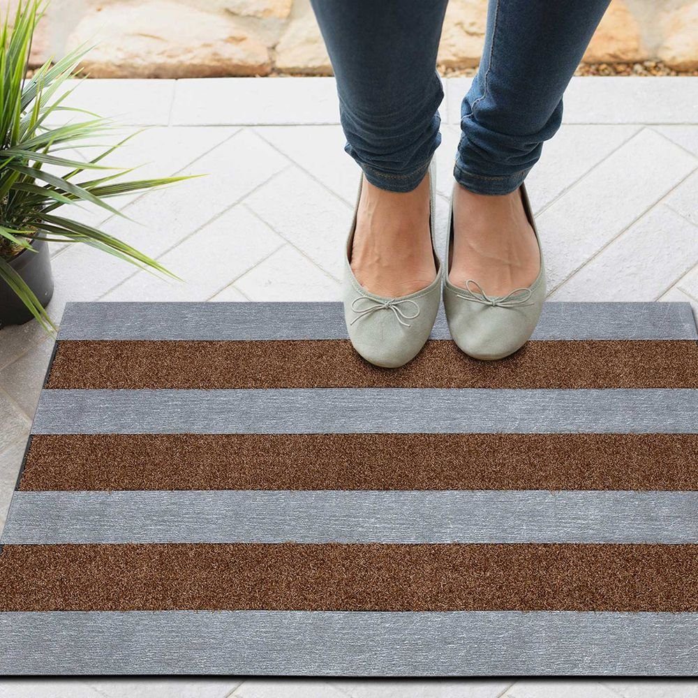 Die Türmatte “Fulda” überzeugt nicht nur in ihrem modernen und attraktiven Aussehen, sondern auch in ihrer leistungsstarken Funktionalität. Durch die abwechselnden Einlagen aus braunen Teppichstreifen und anthrazitfarbenen Alu-Stegen werden Verschmutzungen und Feuchtigkeit von den Schuhsohlen abgelöst und von den braunen Teppichstreifen festgehalten. Die anthrazitfarbenen Alu-Stege dagegen sorgen für die nötige Stabilität und Robustheit.