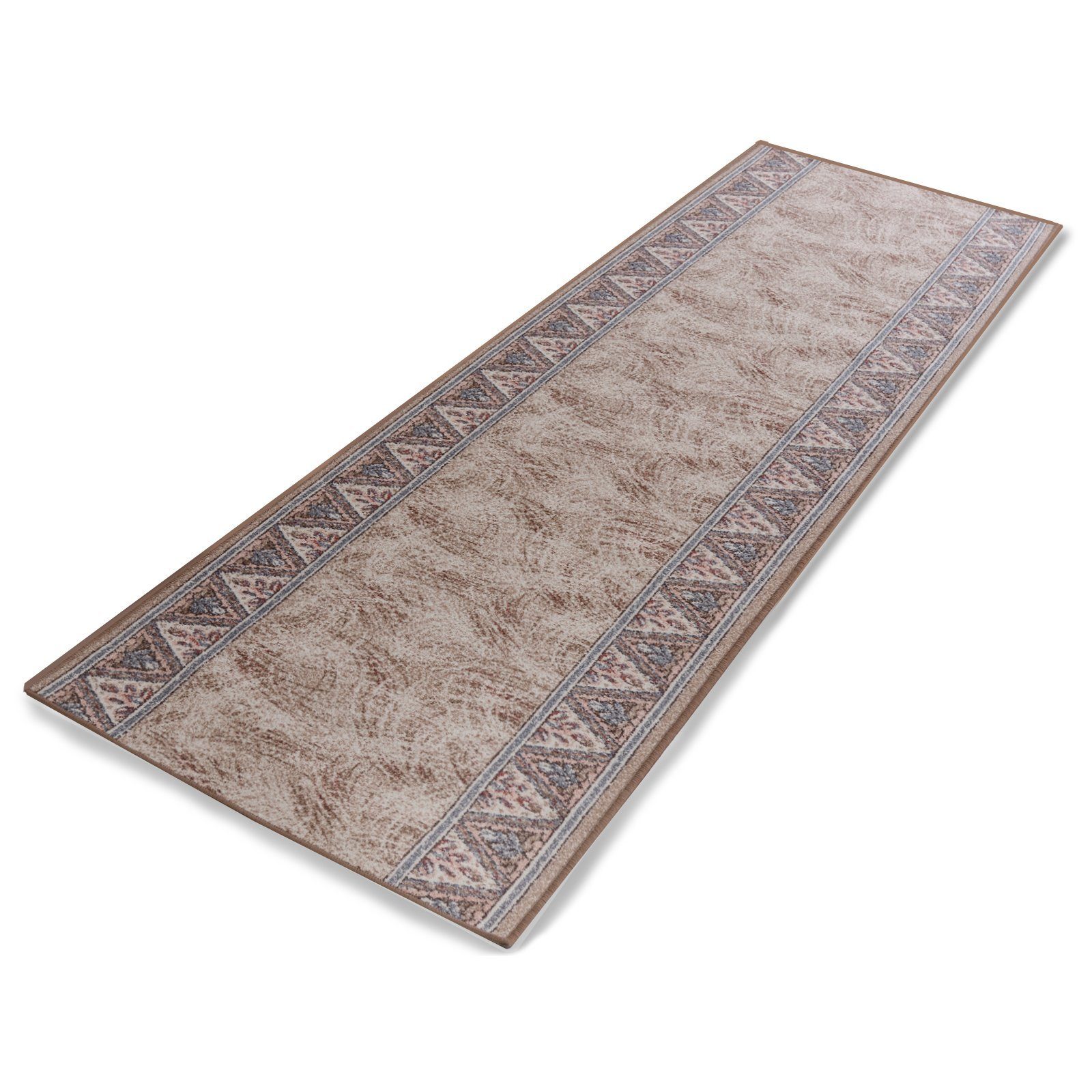 Gefertigt ist der Teppichläufer aus Polyamid. Der Flor bietet den Füßen ein angenehmes und wärmendes Gefühl. Er ist strapazierfähig und hält auch starker Beanspruchung stand. Die gekettelten Ränder schützen den Teppich vor dem Ausfransen, sodass er weiterhin seine Form behält Auf der Rückseite befindet sich eine rutschhemmende Gelschicht, sodass der Teppichläufer nicht verrutscht und die Unfallgefahr gemindert wird. Zugleich wirkt der Wohnteppich antistatisch und schalldämmend. Durch den strapazierfähigen Teppichläufer werden Ihre Böden, sei es Parkett oder Fliesen, ausreichend geschützt.
