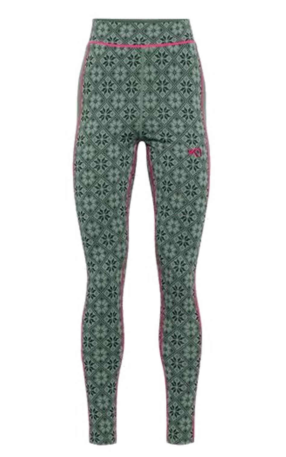 Unterwäsche muss nicht standard sein - dies beweist der Kari Traa Baselayer Pant Rose für Damen mit modischem Muster und weichem Merino-Stoff.