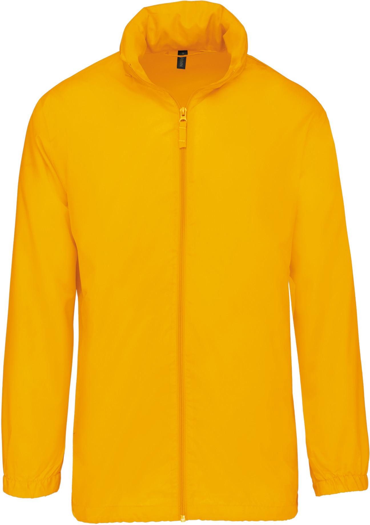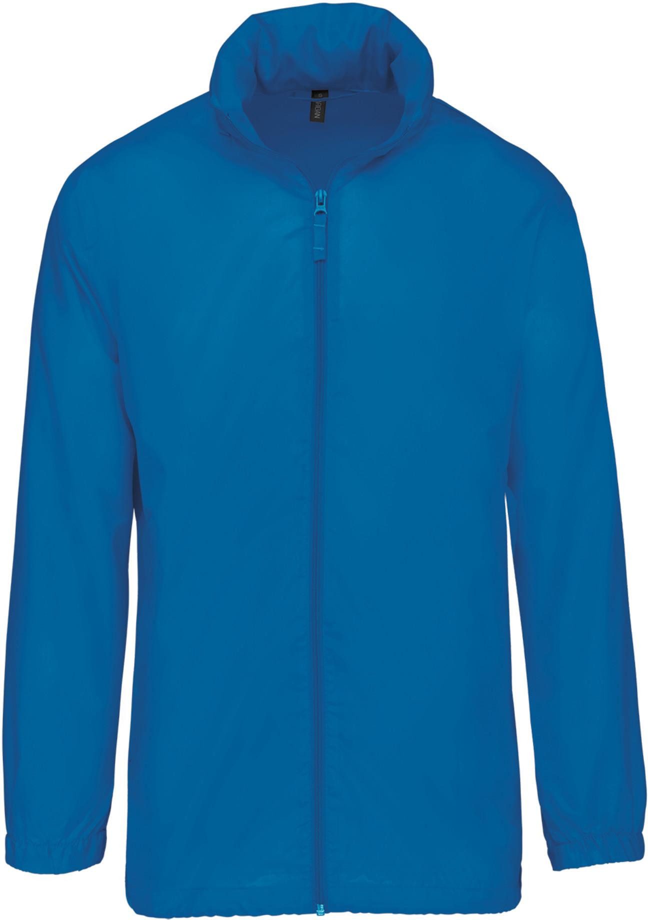 100% Polyester. Im Kragen versteckte Kapuze, mit Klettverschluss. 2 Fronttaschen mit Reißverschluss. Kordelzug am Bund. Gummizug am Ärmelende. Zusammenfaltbar in die Seitentasche (K-WAY® System). Reißverschluss Ton-in-Ton.