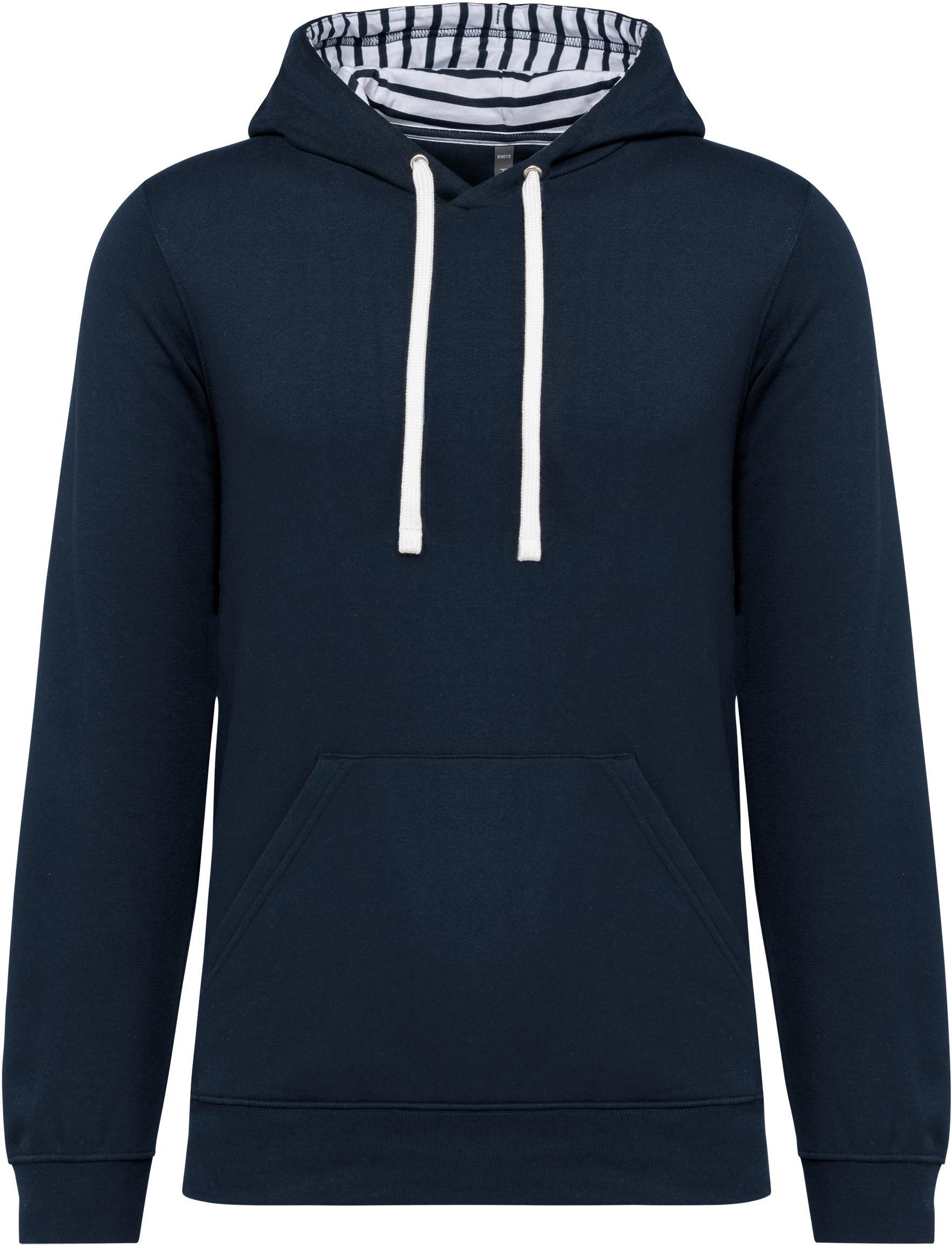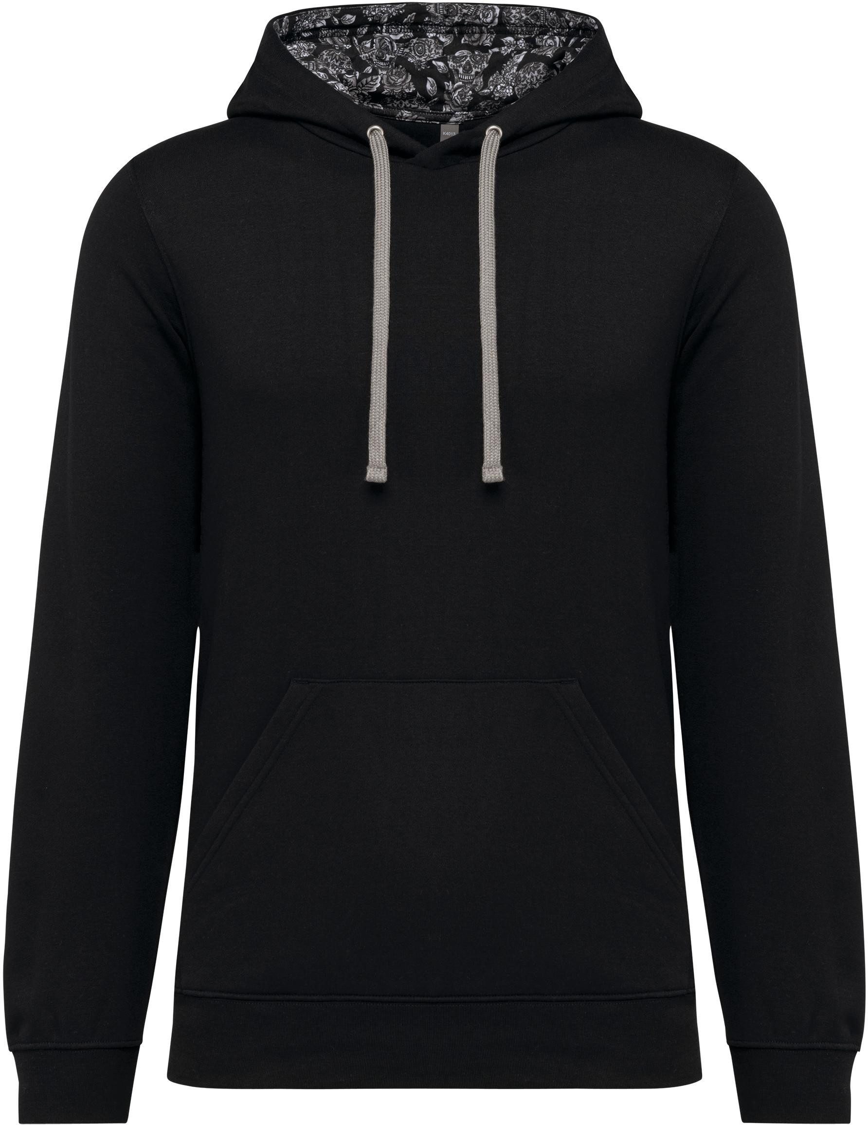 80 % Baumwolle / 20 % Polyester. Gekämmte Baumwolle. Gebürsteter Molton mit 3 Fäden. Körpernaher Schnitt. Gerade geschnittene Ärmel. Kängurutaschen. Halbmondförmiger Halsausschnitt für eine einfache Markenveredelung auf der Innenseite. 1 x 1-Strickbündchen an Ärmelenden und Saum. Gefütterte Kapuze mit spezifischem Stoff aus bedrucktem Baumwolljersey und kontrastfarbene Zugkordel. Markenetikett zum Abreißen.