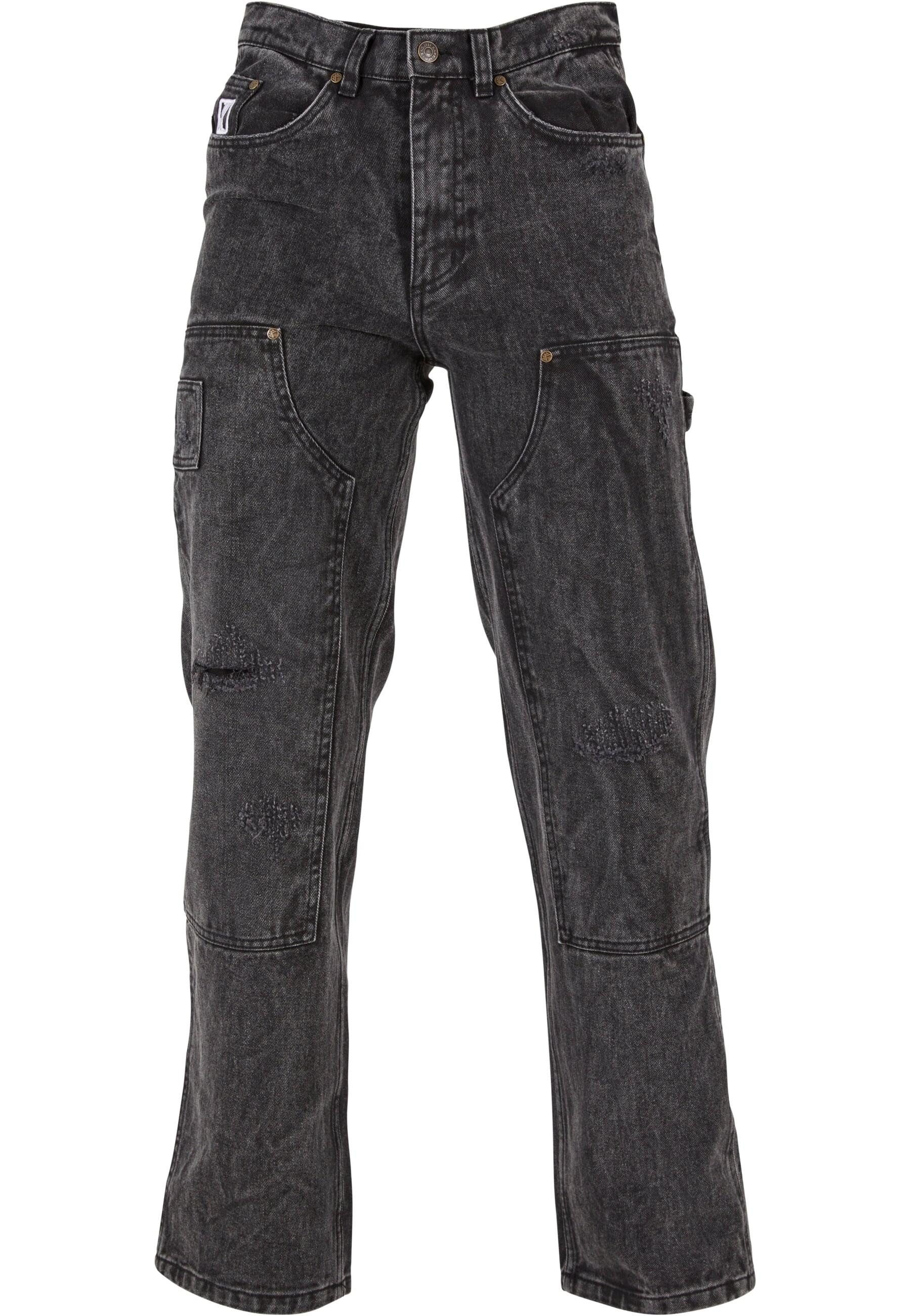 Hose für den Alltag mit relaxed fit und weitem Bein, die durch entspannte Silhouette und mittlere Leibhöhe viel Bewegungsfreiheit bietet und sich als vielseitige Alltagslage eignet. Das robuste, gewebte Baumwollmaterial vermittelt Stand und Struktur bei gleichzeitig natürlicher Haptik, während typische Five-Pocket-Details und eine Kombination aus Reißverschluss und Knopf für vertraute Funktion sorgen. Sichtbare Nähungen und eingesetzte Kniepanele betonen die lässige, arbeitstaugliche Optik und sorgen für zusätzliche Belastbarkeit an beanspruchten Stellen. Die lange Длина ноги und der gerade Saum lassen sich einfach mit Boots oder Sneakern kombinieren, praktisch und unaufgeregt im Gebrauch.
