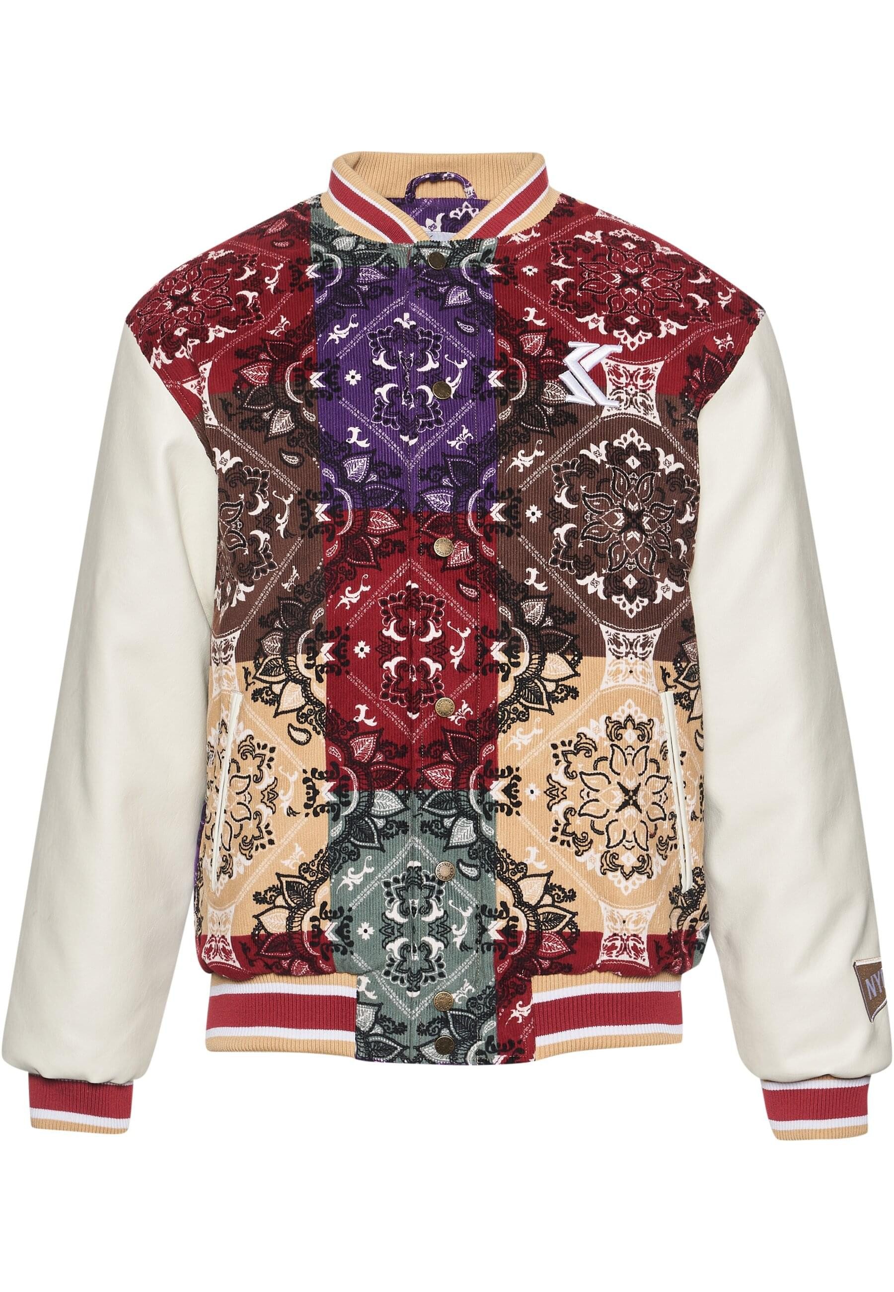 College Jacket, ideal als lässige Alltagslage mit relaxed fit und oversize-Schnitt, zeigt eine patchwork‑artige Gestaltung und eine auffällige Musterung, die der Jacke Charakter verleiht. Die äußere Webware ist eine synthetische Hülle mit leichter Polsterung und glattem Innenfutter, die Struktur gibt, während Rippbündchen an Kragen, Ärmeln und Saum für guten Sitz sorgen. Die lange Ärmelkonstruktion mit eingesetzten Ärmeln und die vorn liegende Druckknopf‑Verschlussleiste erleichtern das An- und Ausziehen, während eine eingelassene Leistentasche funktionalen Stauraum bietet. Dezente Applikationen setzen akzentuierte Details und unterstreichen den sportiven College‑Charakter dieses Modells.