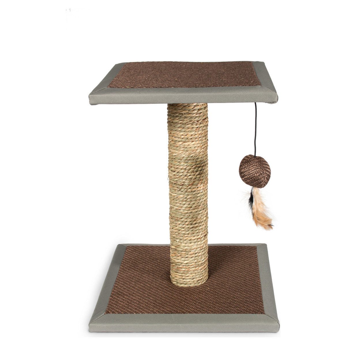 Der Kratzbaum SEGRA passt mit seinem natürlichen Look perfekt in jede Wohnung. Das Seegras stellt mit seinem natürlichen Ursprung ein tolles Material für die optimale Kratzstelle für jede Katze und jeden Kater dar. Die Bodenplatte und die Liegefläche sind mit einem robustem Material bezogen, das nicht so schnell reißt. Für noch mehr Spielspaß sorgt der Ball mit Feder, der mit einem Gummiband an der Liegefläche befestigt ist.
