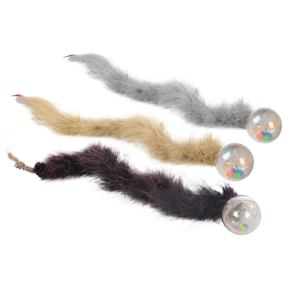 Für aufregende Katzenspiele quer durch die Wohnung! Dieser Rasselball muss gefangen werden. Mit weichem Plüschschwanz und echten bunten Federn. Duftendes Catnip regt zu immer neuen Spielen an. Farblich sortiert.