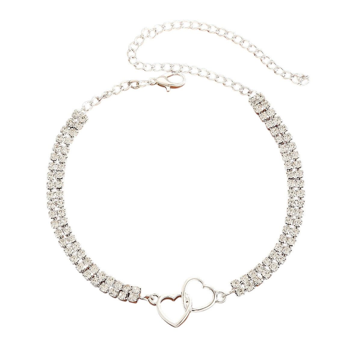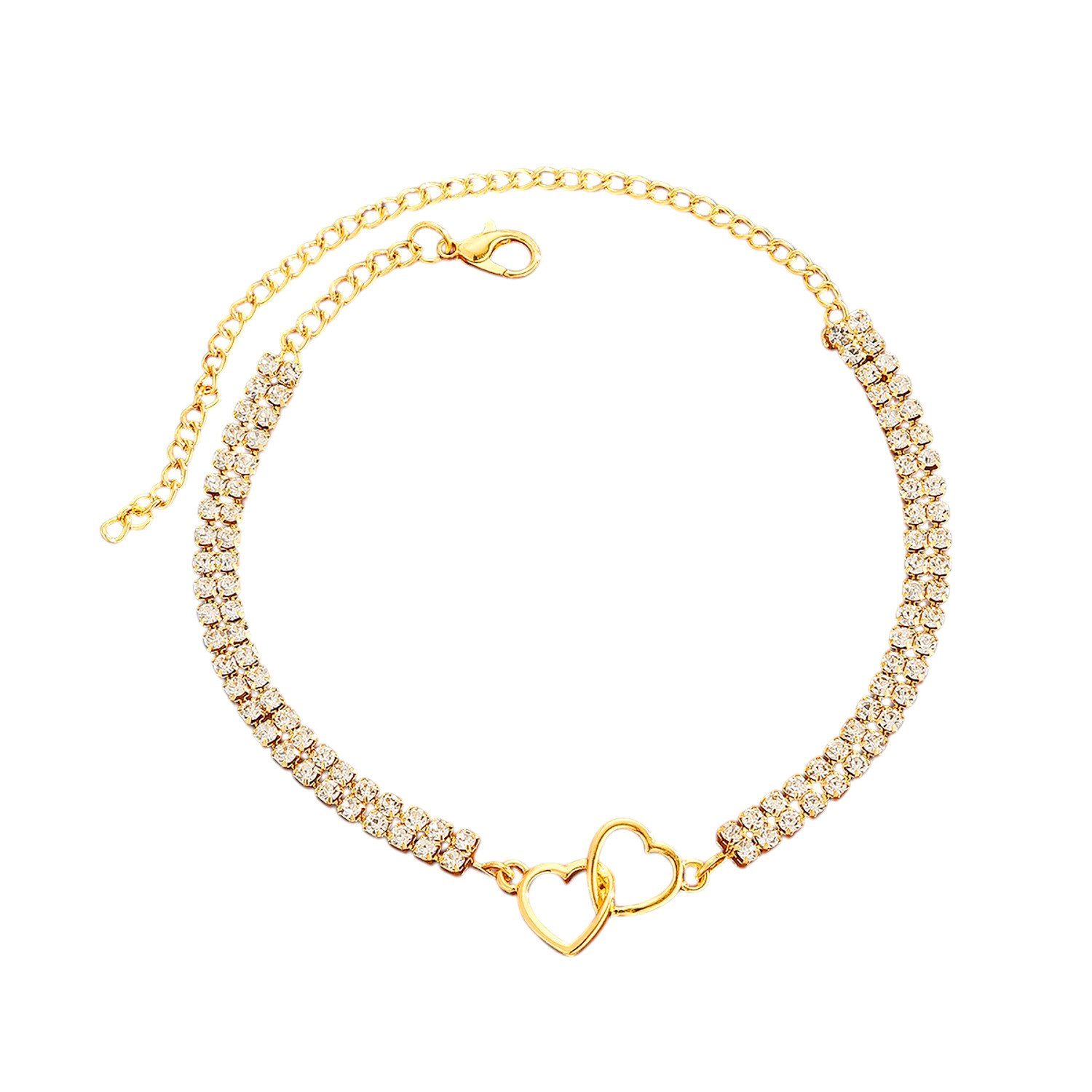 Gefertigt aus hochwertiger Legierung, veredelt mit funkelnden Kristallen und einem doppelt verschlungenen Herzanhänger, bringt das Kettchen Glanz an dein Fußgelenk – ganz gleich, ob in Silber oder Gold. Der zarte Look schmeichelt deiner Haut und zieht die Blicke auf sich – elegant, romantisch, strahlend.