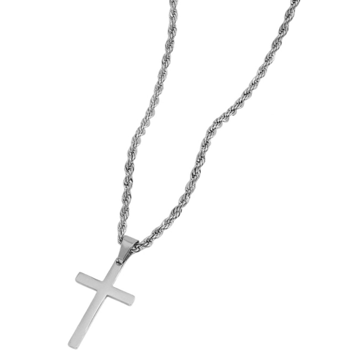 Der polierte Kreuzanhänger in klassischer Form (3,5 x 2 x 0,2 cm) wirkt maskulin und stilvoll – ein Statement, das sich zu jedem Outfit tragen lässt. Die Kordelkette ist 48 cm lang, kann um 4 cm verlängert werden und liegt angenehm am Hals an. Die Breite von 0,4 cm sorgt für eine präsente, aber nicht überladene Optik.