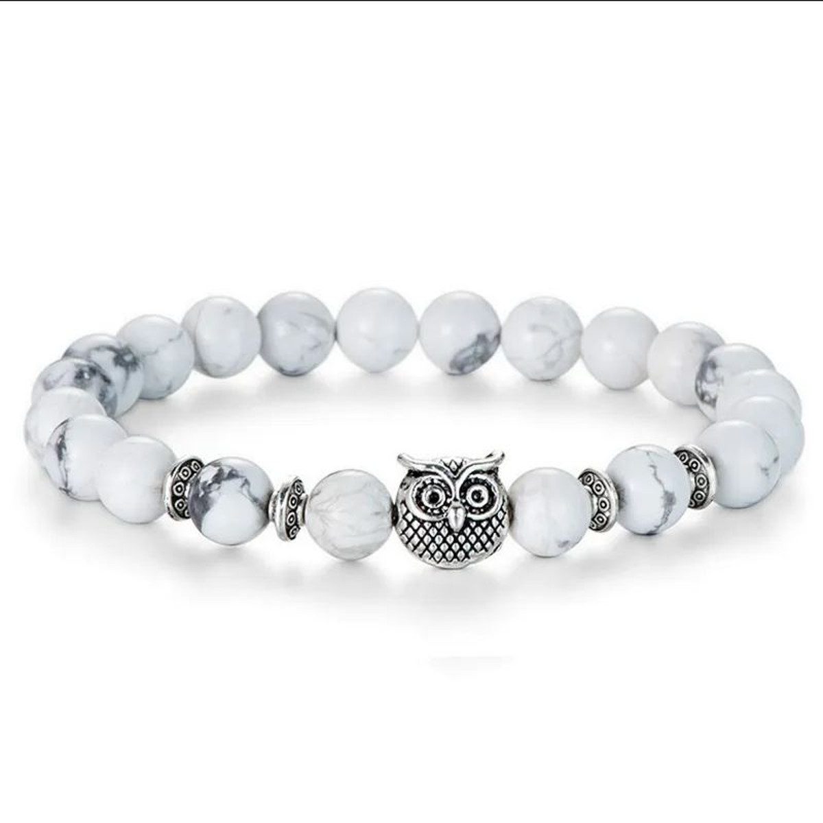 Die natürlichen Perlen mit einem Durchmesser von 8 mm verleihen dem Armband eine harmonische Balance zwischen Robustheit und Ästhetik, während die kleine Eule (1 x 1 cm) einen verspielten Akzent setzt, der gleichzeitig Weisheit und Schutz symbolisiert. Dieses Armband passt perfekt für Naturliebhaber, spirituell Interessierte und all jene, die Wert auf stilvolle, individuelle Accessoires legen.