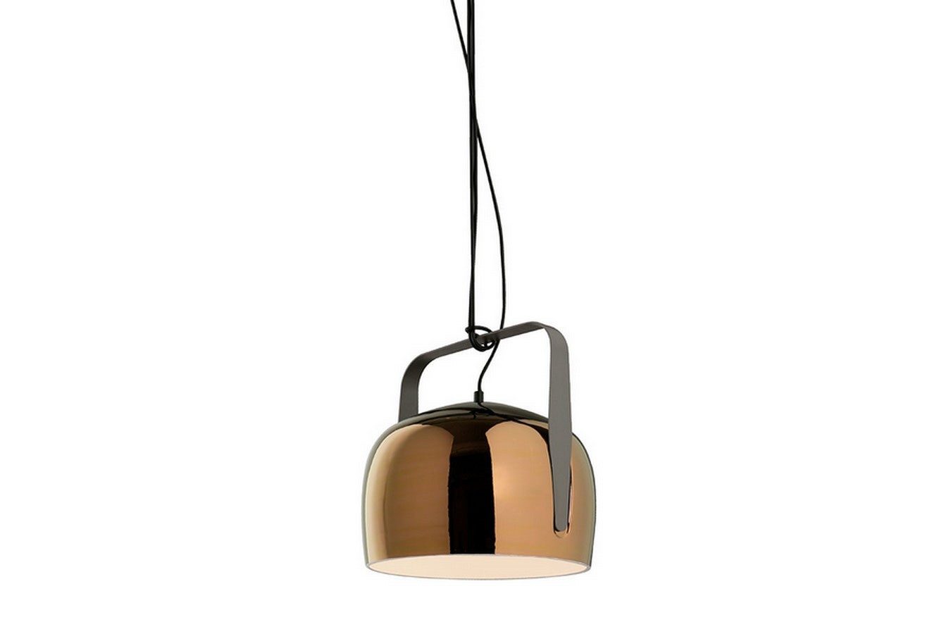 Der elegante Kontrast zwischen dem edlen Bronzeton des Lampenschirms und dem anthrazitfarbenen Metallbügel verleiht der Hängeleuchte Bag eine zeitlose Eleganz. Der Metallbügel dient nicht nur als stilvolle Ergänzung zum Lampenschirm, sondern auch als zuverlässige Aufhängung für diese außergewöhnliche Leuchte.