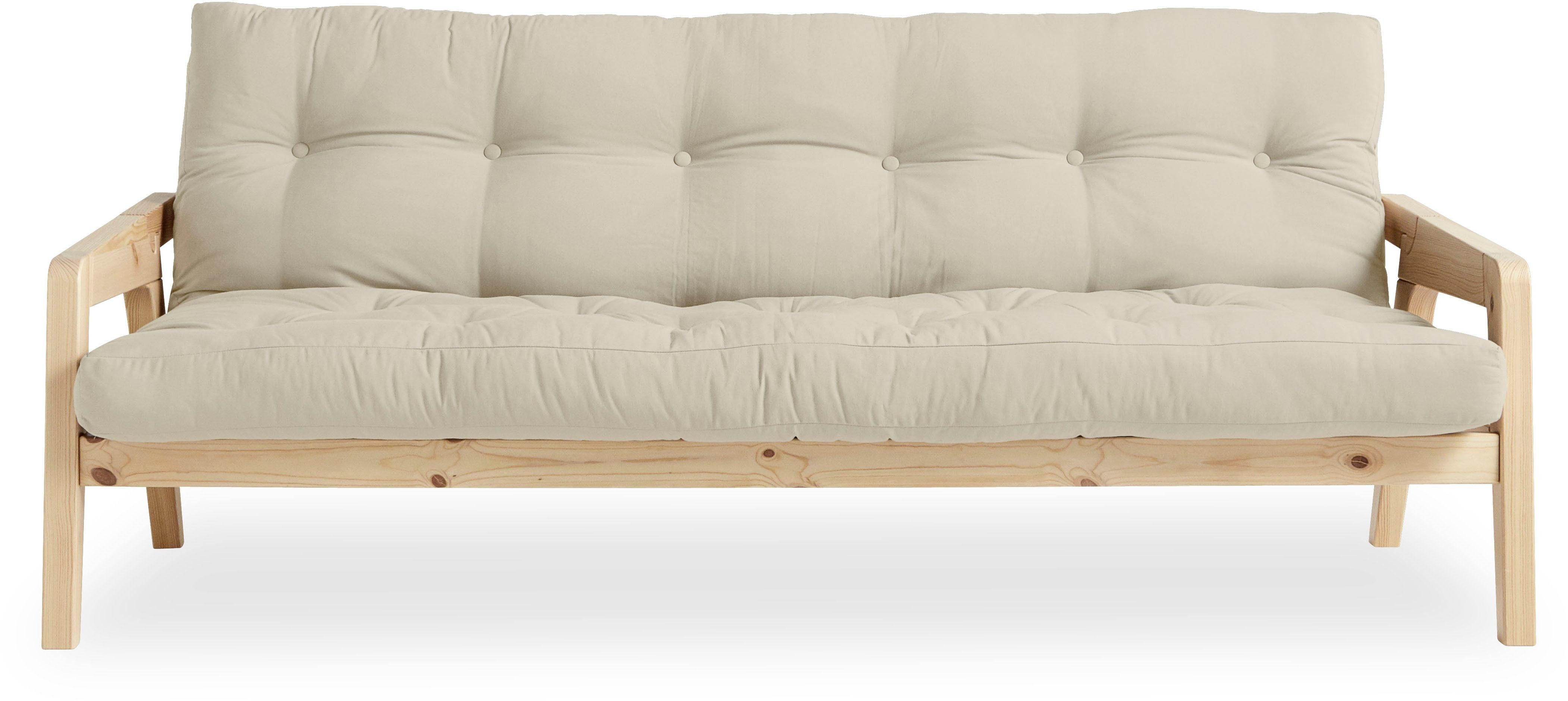 Wissenswertes | Das Sofa ist zum Teilen gemacht. Sowohl als Sofa als auch aufgefaltet als Twin-Size-Bett. Die Armlehnen sind so konzipiert, dass sie einfach gelöst werden können, um mit nur einem Dreh als hintere Beine für das Twin-Size-Bett zu fungieren. Dies ist eine sehr einfache Umwandlung vom Sofa zum Bett. Eine bequeme Futon-Matratze ist inklusive. Details: