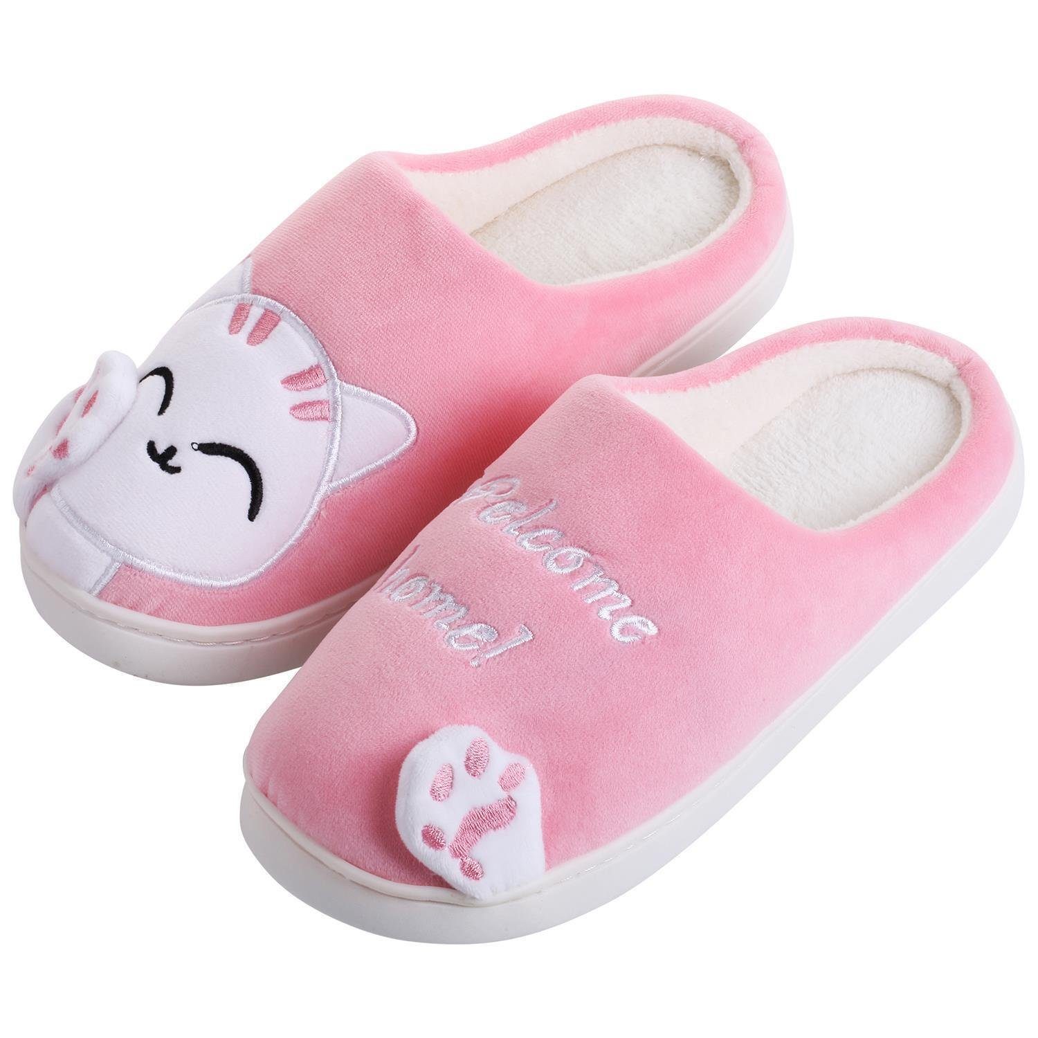 Besondere Merkmale | Hausschuhe, weich, warm, süß, kuschelig, Plüsch Katze (Weiß-Pink) |