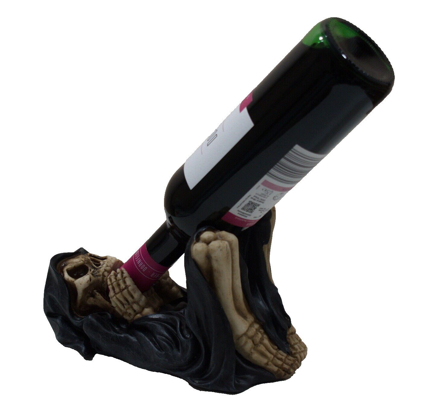 Schöne dekorative Gothic Deko Figur,Reaper, als Weinflaschenhalter,Flaschenhalter,Flaschenständer, aus Polyresin (Kunststein) gestaltet,gearbeitet, von Hand gefertigt und von Hand bemalt, diese tolle Gothic Deko Figur,Skulptur ist ein toller Blickfang im gesamten Wohnbereich, eine beeindruckende Deko Skulptur für jeden Freund des Mystischen, der Fantasy und der ausgefallenen Dekoration,aber auch eine ideale Geschenkidee, für den Innen- und Außenbereich geeignet,da wetterfest !! Höhe ca. 13 cm, Breite ca. 25 cm, Tiefe ca. 14 cm (die Lieferung erfolgt ohne Weinflasche !!) Fototechnisch bedingt können die Farben leicht vom Original abweichen!