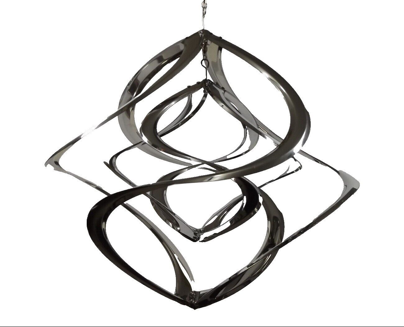 Wunderschönes trendiges dekoratives Windspiel, doppel Hurrikan,Twister,handgefertigt aus poliertem Edelstahl, sehr filigran gearbeitet,gestaltet, es bewegt sich durch die tolle Form bei jedem Luftzug, bereits ein leichter,seichter Wind genügt um das Windspiel zu drehen, dadurch das sich die beiden Elemente bei Wind entgegengesetzt drehen, ergeben sich beruhigende super optische Effekte, dieses Windspiel ist ein wunderbarer Blickfang auf der Terrasse, im Garten,in einem Fenster,oder einfach frei hängend in jedem Raum, für den Innen- und Außenbereich geeignet,da wetterfest,frostfest,rostfrei und UV-beständig, mit Haken zum Aufhängen, Höhe ca. 27 cm,Durchmesser ca. 30 cm, Gesamthöhe mit Aufhänger ca. 35 cm Fototechnisch bedingt können die Farben leicht vom Original abweichen!