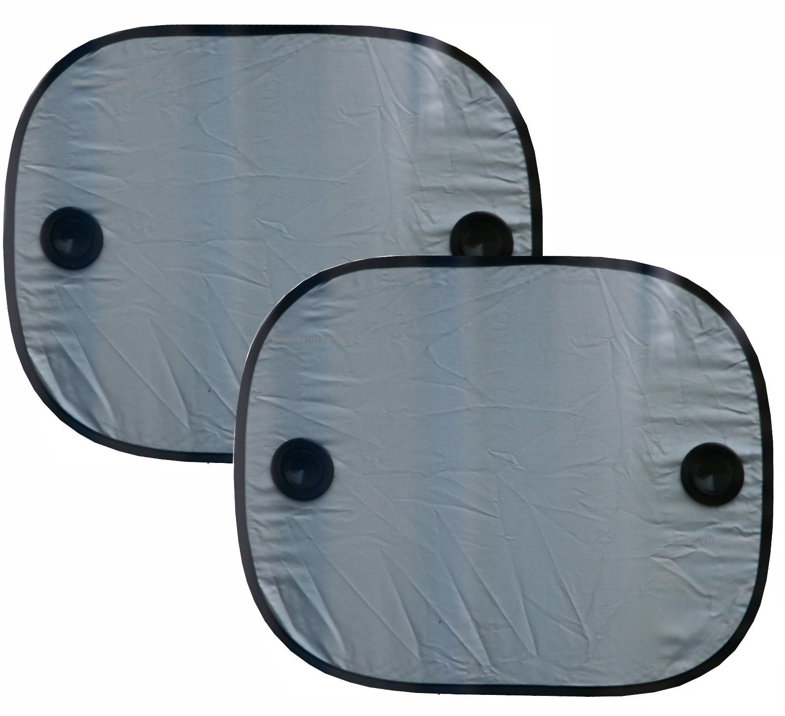 Zwei schwarze Falt-Sonnenblenden mit Saugnäpfen