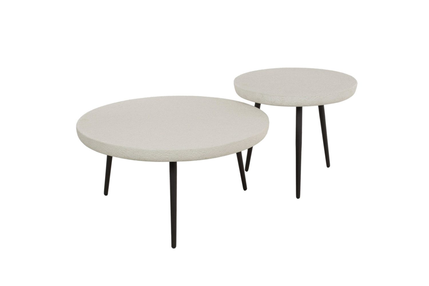 Das trendige runde Couchtisch-Set BRAZOS von KAWOLA ist aus Marmorverbundstoff mit Stahlbeinen gefertigt. Die Platten sind wunderschön gearbeitet und verleihen den Tischen einen einzigartigen Look. Das Set besteht aus zwei Tische, die nach Belieben spielerisch zusammen estellt werden können. Der größere Tisch hat einen Durchmesser von 70 cm und eine Höhe von 35 cm, und der kleinere Tisch hat einen Durchmesser von 50 cm und eine Höhe von 43 cm. Ob im Wohnzimmer, in der Lounge oder als stilvolle Ablage – das Couchtisch-Set BRAZOS passt in jedes Zuhause und setzt ein echtes Design-Statement.
