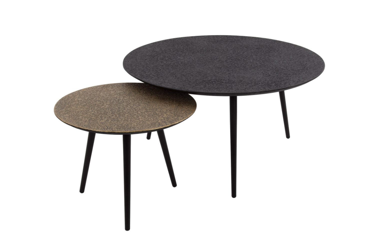 Das schöne Couchtisch-Set LAUCA von KAWOLA ist in "Metallic"-Antikbronze/Gold und Schwarz gehalten. Die Platte ist wunderschön verarbeitet, was ihr einen einzigartigen Look verleiht. Die Tische können nach Belieben spielerisch zusammen gestellt werden. Dieses Set ist ein echter Blickfang! Es besteht aus zwei Tischen. Der größere Tisch hat einen Durchmesser von 74 cm und eine Höhe von 40 cm, der kleinere Tisch hat einen Durchmesser von 58 cm und eine Höhe von 36 cm. Ob im modernen Loft, im gemütlichen Wohnzimmer oder in einer eleganten Lounge – das Couchtisch-Set LAUCA setzt stilvolle Akzente und verbindet Funktionalität mit zeitloser Ästhetik.