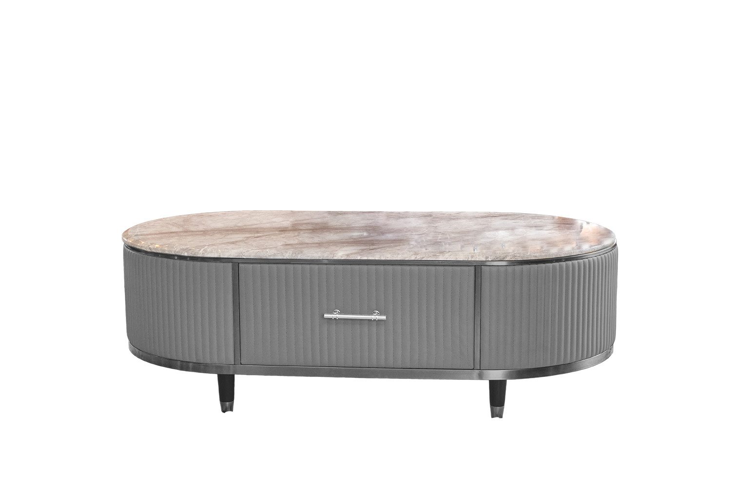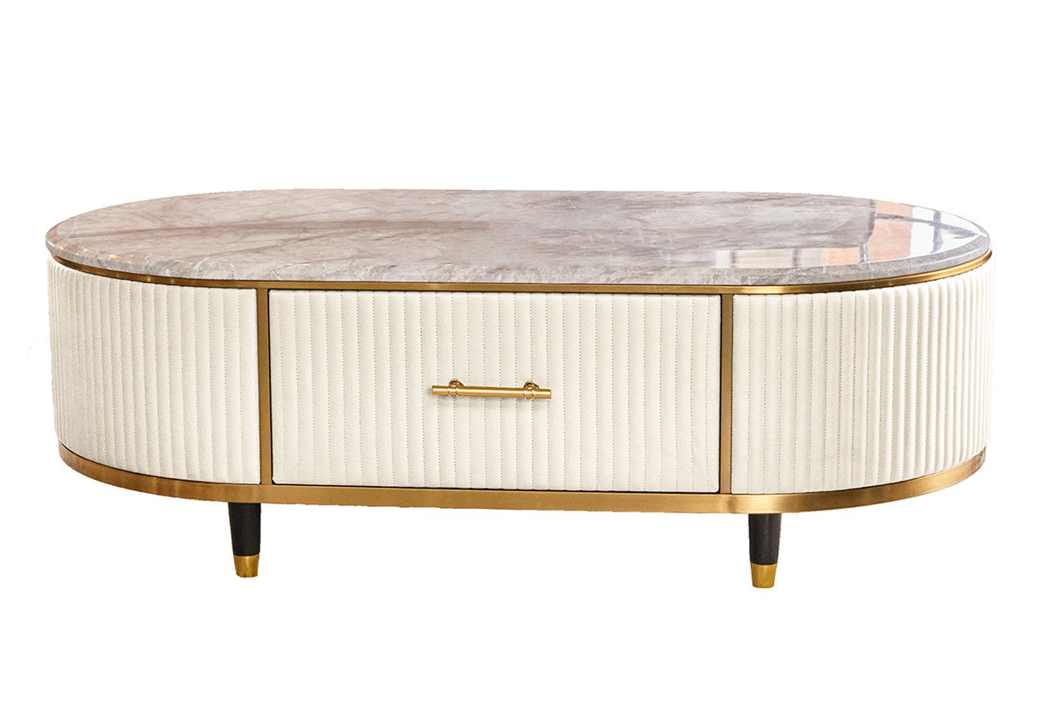 Der KAWOLA Couchtisch MARIA ist ein Eyecatcher in jedem Zuhause. Sein nostalgisches Retro-Design im 50er-Jahre-Stil zeichnet sich besonders durch den Materialmix aus. Die Platte aus hellgrauem Marmor und die aufwendig verarbeitete Front aus Kunstleder bilden einen gelungenen Kontrast. Die goldfarbenen Füße sowie Details aus Edelstahl runden das Gesamtbild ab. Впередe Artikel der Serie MARIA ergänzen die heimischen vier Wände um ein geschmackvolles Möbelstück.