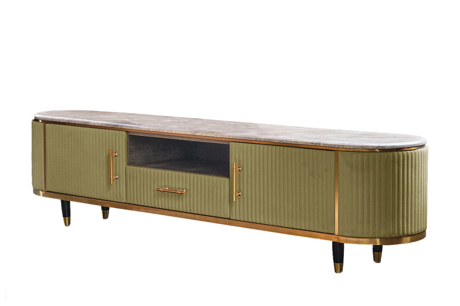 Material | Platte: Stuckmarmor; Gestell: Edelstahl; Verkleidung: Kunstleder |