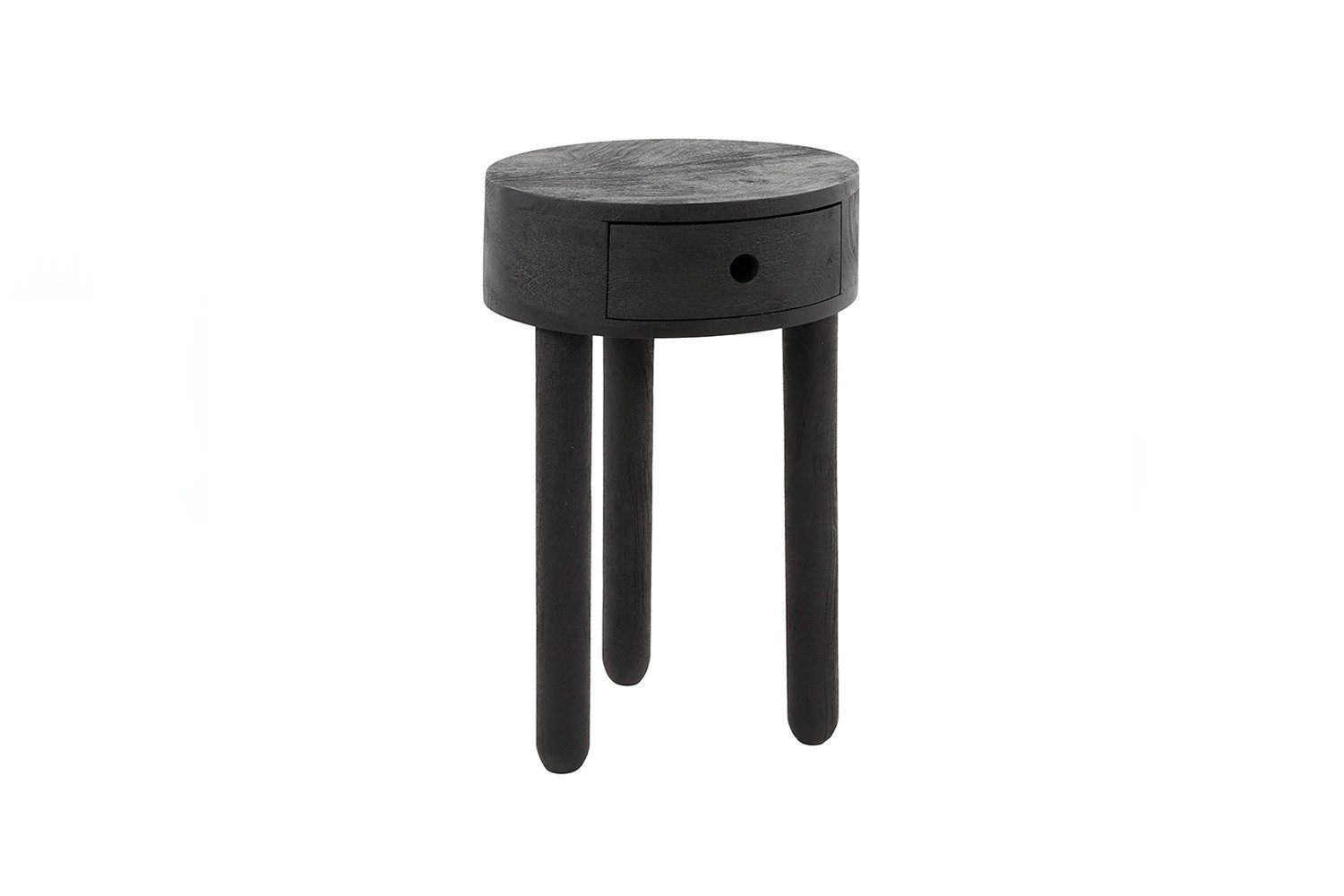 Der KAWOLA Nachttisch RIDA überzeugt mit seinem runden Design und hochwertiger Verarbeitung aus massivem Mangoholz mit schwarzem Finish. Die sanften, abgerundeten Formen verleihen dem Nachttisch eine moderne und zugleich warme Ausstrahlung. Das glatt geschliffene Mangoholz sorgt für eine glatte Oberfläche, die die natürliche Holzmaserung besonders schön hervorhebt. Ausgestattet mit einer praktischen Schublade bietet RIDA ausreichend Stauraum für persönliche Gegenstände und sorgt für Ordnung neben dem Bett. Mit den kompakten Maßen von 35 x 35 x 55 cm passt der Nachttisch ideal in kleine Räume oder als stilvoller Akzent in jedem Schlafzimmer. Der Nachttisch RIDA vereint Design, Funktionalität und Qualität – perfekt für ein modernes Wohnambiente.