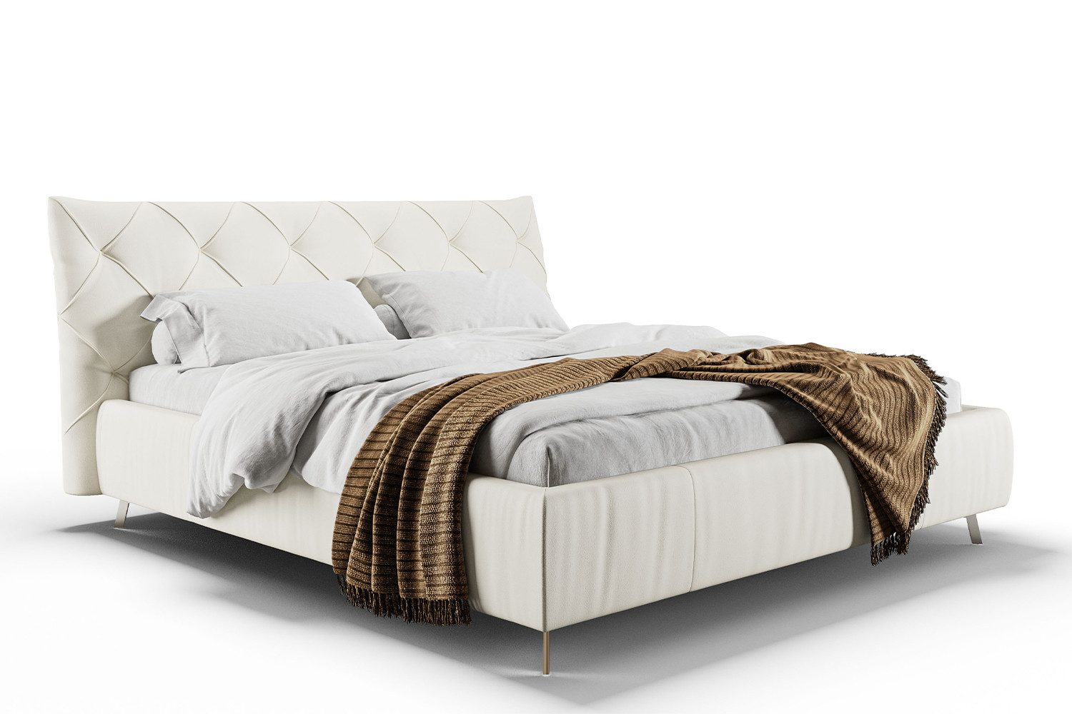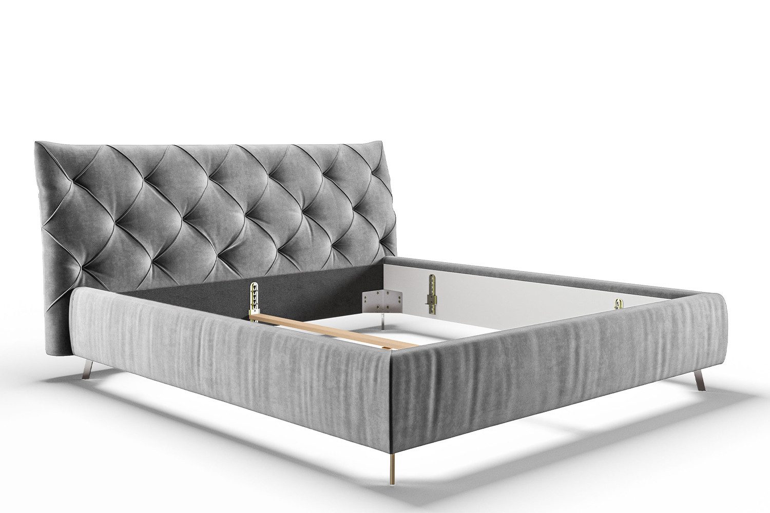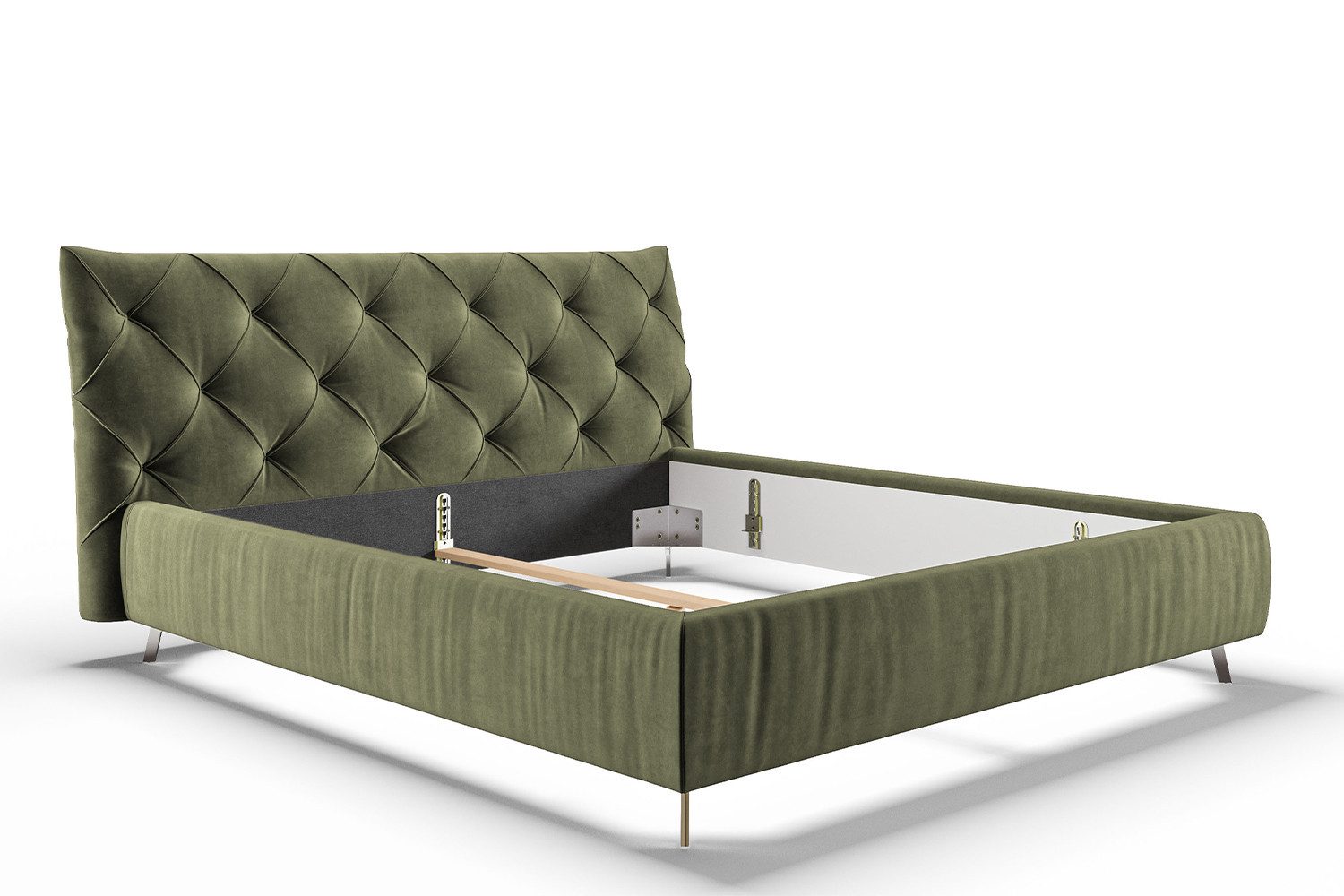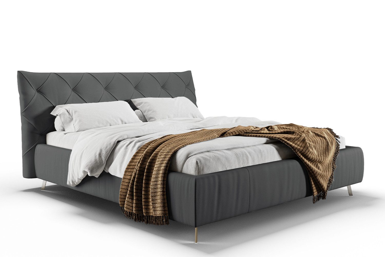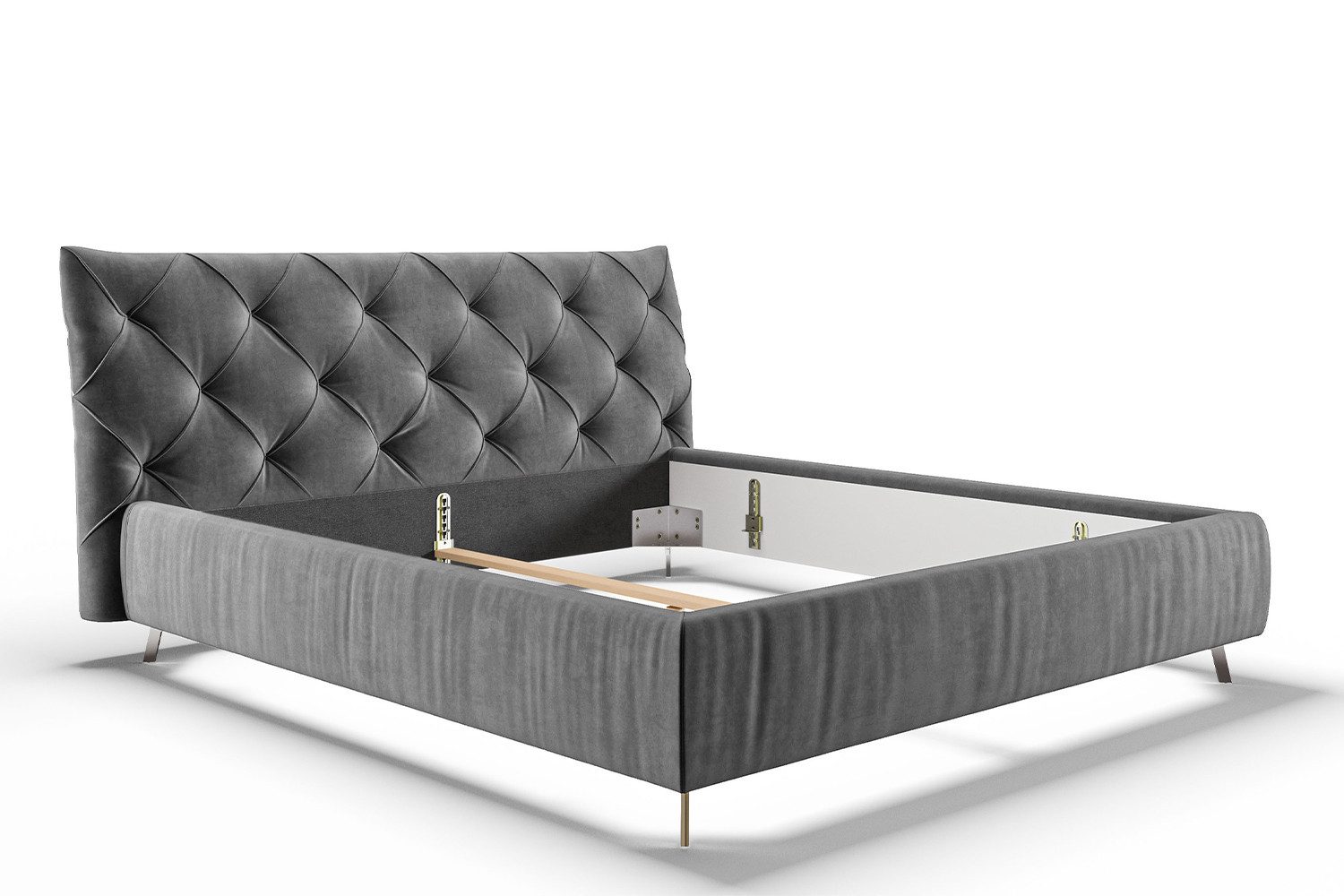 Das KAWOLA Polsterbett ANNY ist eine echte Bereicherung für jedes Schlafzimmer. Das Kopfteil sowie Fuß- und Seitenteile sind mit hochwertigem Leder oder Velvet-Stoff bezogen. Die klassischen Absteppungen am Kopfteil verleihen dem Bett eine zeitlose Eleganz. Das bequeme Polster sorgt für höchsten Komfort beim Sitzen und beim Lesen. Das Bettgestell besteht aus Massivholz und Holzwerkstoffen, und die formschönen, verchromten Metallfüße runden das stilvolle Design wunderbar ab. Das Möbelstück fügt sich so nahtlos in jedes Interieur ein und verspricht schöne Stunden in Ihrem trauten Heim. Sie werden das Polsterbett ANNY gar nicht mehr verlassen wollen!