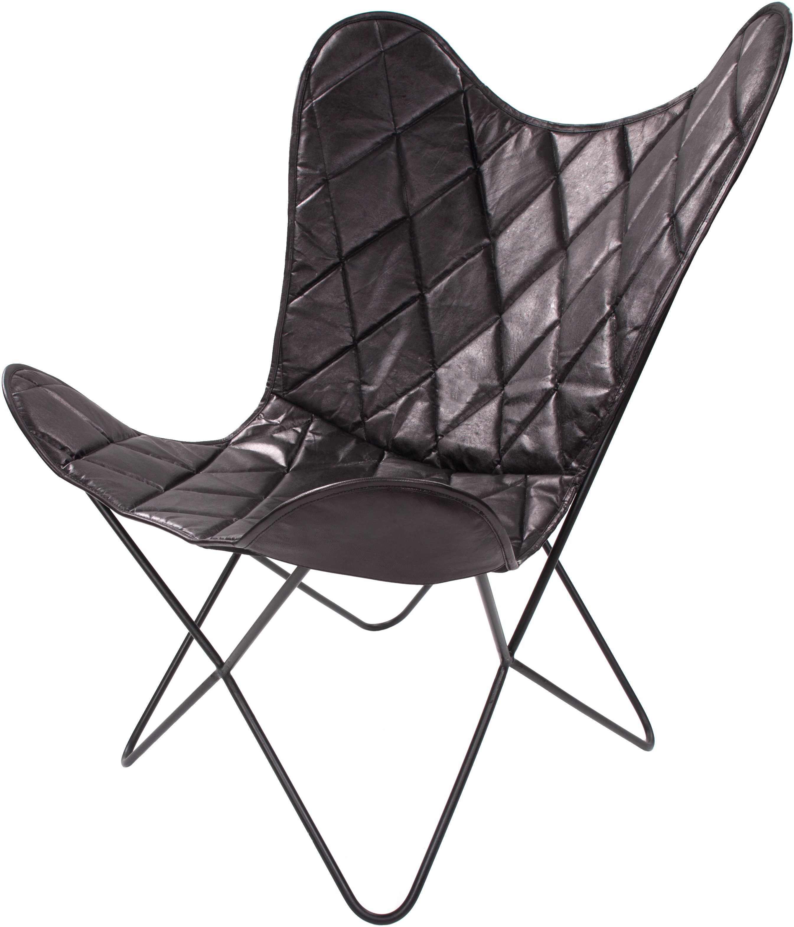 Wissenswertes | Schmetterlingsstuhl mit Karo-Muster ? handgemacht aus Leder Mit diesem exklusiven Möbelstück haben Sie einen wahren Blickfang. Das natürliche Leder in Cognac macht auf dem robusten Eisengestell eine gute Figur und ist dazu noch äußerst komfortabel. Sie können es sich in dem Stuhl mit einer Sitzhöhe von ca. 35 cm bequem machen und entspannen. Bis zu einem Gewicht von ca. 100 kg ist der Stuhl belastbar. Das moderne Karo-Muster aus dekorativen Nähten ist sowohl für moderne Einrichtungen als auch für klassische oder rustikale Wohnräume wie gemacht. Kombinieren Sie einen schönen Beistelltisch und kreative Wohnaccessoires zu dem Schmetterlingsstuhl und schaffen Sie sich Ihre ganz eigene Ruhe-Oase. Ein weiterer Vorteil des Materials sind die robuste Stabilität und die einfache Reinigung. Naturprodukte können bis zu 30 % in Optik, Form und Farbe von dem Bild und der Beschreibung abweichen. Artikeldetails: