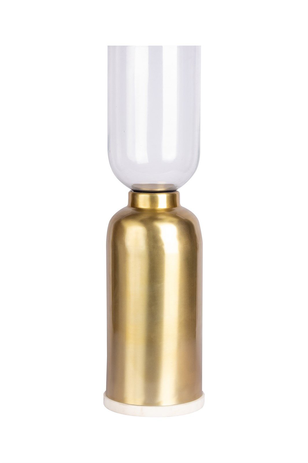 **Für glänzende und gemütliche Momente zu Hause** Jede noch so kleine Kerze kann einem Raum Wärme verleihen. Umso mehr lädt dieser stilvolle und große Bodenkerzenhalter zum Wohlfühlen und Entspannen ein. Antikes Gold oder Grau verleihen der geradlinigen, schlichten Form ein edles Aussehen, das optimal mit jedem Interior harmoniert. Der Kerzenständer ist in verschiedenen Farben und Größen erhältlich und kreiert besonders mit weiteren Windlichtern ein stimmungsvolles, gemütliches Ambiente, das jeder Gast zu schätzen weiß. Der aus glänzendem Metall handgefertigte Kerzenhalter ist dank des integrierten Marmor-Sockels stand- und rutschfest, während ein langer Glaszylinder die Kerze elegant einrahmt und vor Zugluft schützt. Ob romantisches Candlelight-Dinner oder gemütliches Entspannen im Garten, der elegante Bodenkerzenhalter erzeugt eine besinnliche Stimmung und veredelt als Deko-Highlight jeden Raum mit stilvoller Eleganz. Hinweis: Marmor ist ein Naturstein, welcher in der Farbe und Marmorierung gegenüber der Abbildung immer abweichen kann. Jedes Produkt ist ein Unikat. Spezifikationen: • Farbe: Gold / Schwarz • Material: 45% Eisen, 45% Glas, 10% Marmor • Größe: 20,5 cm (L/T) x 20,5cm (B) x 63,5cm (H) / 20,5 cm (L/T) x 20,5cm (B) x 76,25cm (H)