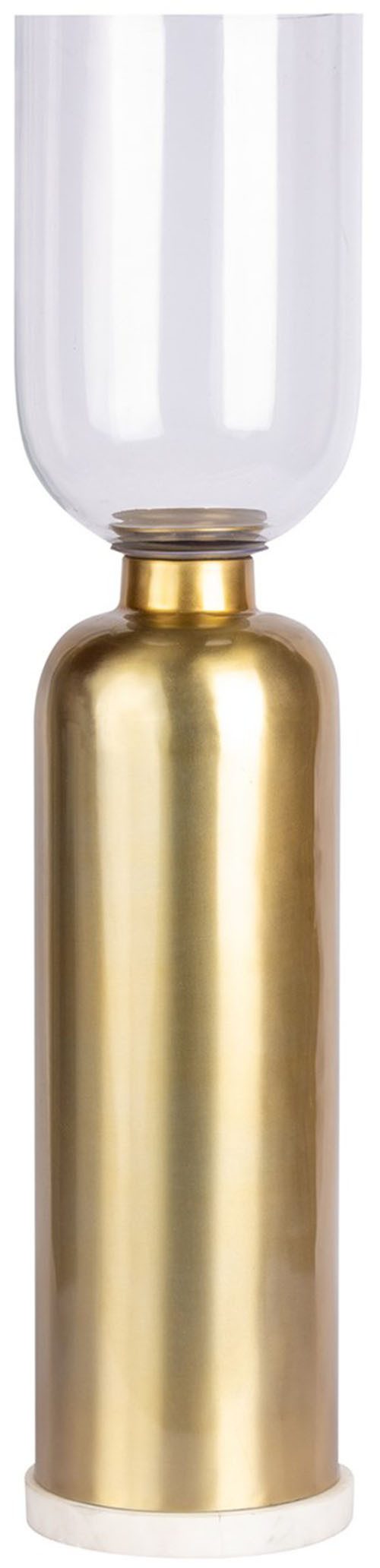 **Für glänzende und gemütliche Momente zu Hause** Jede noch so kleine Kerze kann einem Raum Wärme verleihen. Umso mehr lädt dieser stilvolle und große Bodenkerzenhalter zum Wohlfühlen und Entspannen ein. Antikes Gold oder Grau verleihen der geradlinigen, schlichten Form ein edles Aussehen, das optimal mit jedem Interior harmoniert. Der Kerzenständer ist in verschiedenen Farben und Größen erhältlich und kreiert besonders mit weiteren Windlichtern ein stimmungsvolles, gemütliches Ambiente, das jeder Gast zu schätzen weiß. Der aus glänzendem Metall handgefertigte Kerzenhalter ist dank des integrierten Marmor-Sockels stand- und rutschfest, während ein langer Glaszylinder die Kerze elegant einrahmt und vor Zugluft schützt. Ob romantisches Candlelight-Dinner oder gemütliches Entspannen im Garten, der elegante Bodenkerzenhalter erzeugt eine besinnliche Stimmung und veredelt als Deko-Highlight jeden Raum mit stilvoller Eleganz. Hinweis: Marmor ist ein Naturstein, welcher in der Farbe und Marmorierung gegenüber der Abbildung immer abweichen kann. Jedes Produkt ist ein Unikat. Spezifikationen: • Farbe:Gold / Schwarz • Material: 45% Eisen, 45% Glas, 10% Marmor • Größe: 20,5 cm (L/T) x 20,5cm (B) x 63,5cm (H) / 20,5 cm (L/T) x 20,5cm (B) x 76,25cm (H)