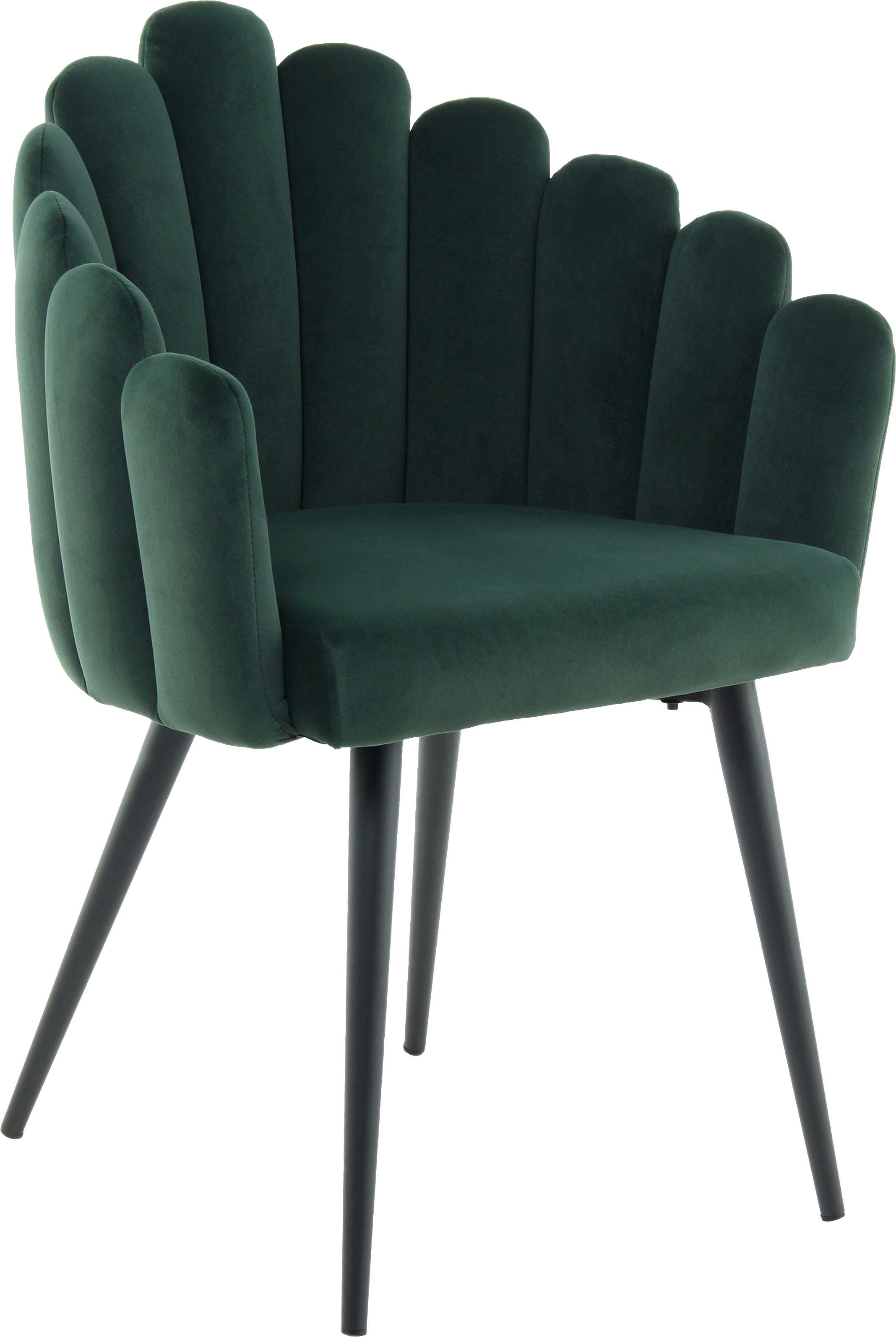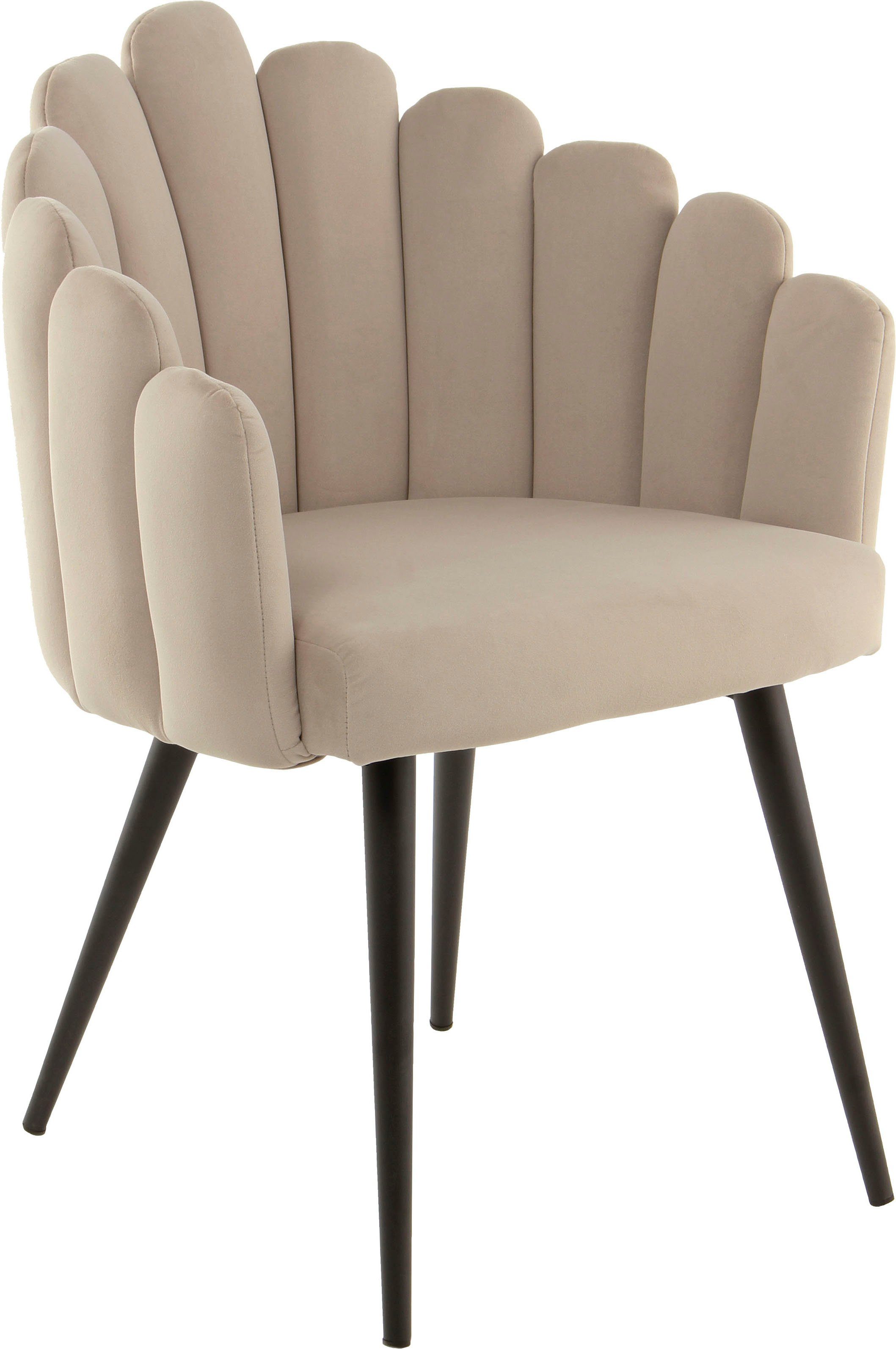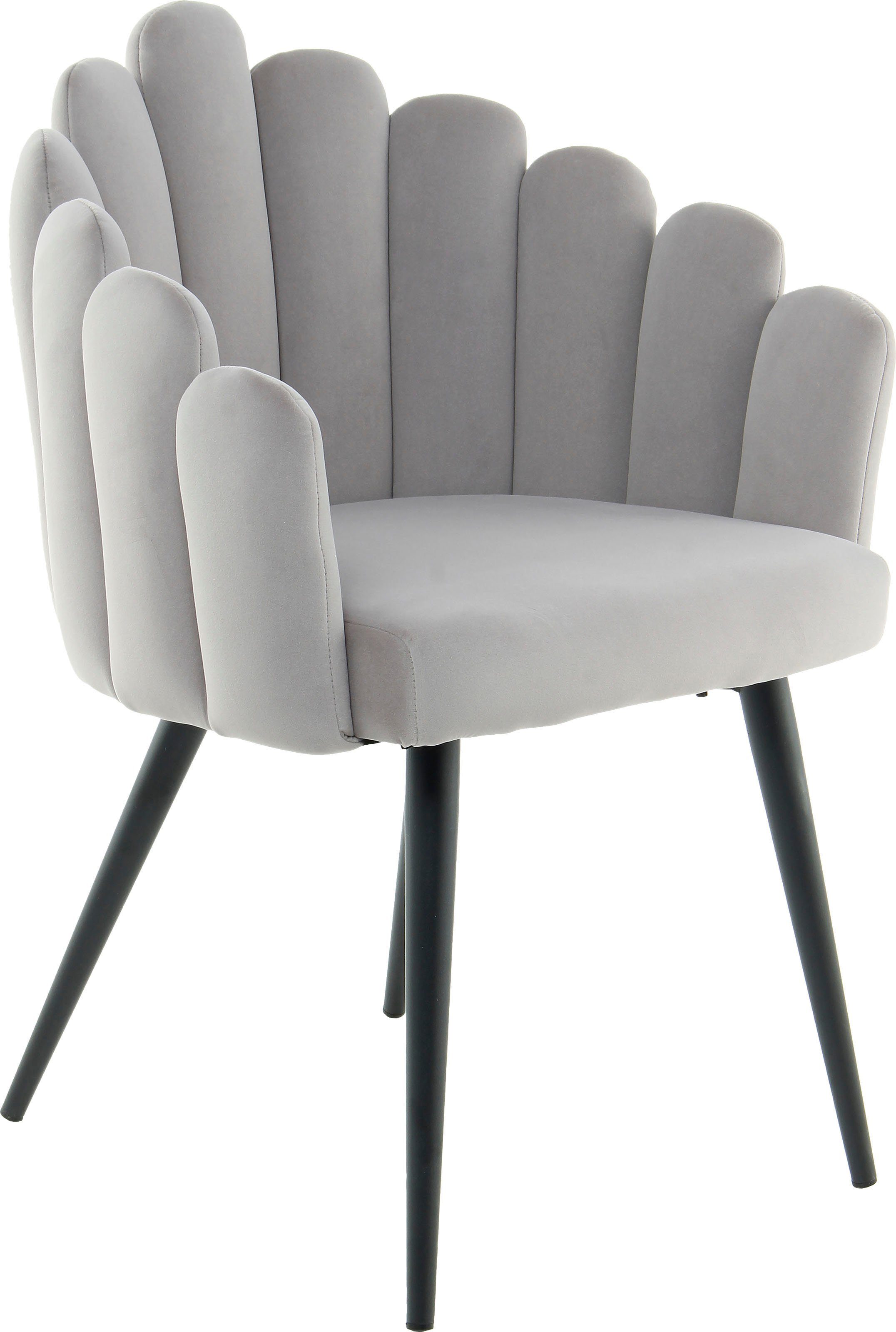 **Komfortabler Design-Stuhl** Die extravagante Gestaltung dieses Stuhls ist ein absolutes Highlight in jedem Raum. Die Sitzschale zieht durch ihre besondere Form alle Blicke auf sich. Dank seiner einfarbigen Gestaltung in zeitgemäßem Stil kann sich der Design-Stuhl in die verschiedensten Einrichtungsstile integrieren lassen. Zudem verspricht der Design-Stuhl hohen Sitzkomfort. Sitzfläche und Rückenlehne sind weich gepolstert, sodass auch längeres Sitzen angenehm und gemütlich bleibt. Ein solides Metallgestell verleiht dem Stuhl Stabilität und rundet gleichzeitig das Gesamtbild ab. Der Stuhl kann in seiner tatsächlichen Farbgebung von den Bildern abweichen. Durch unterschiedlichen Lichteinfall und verschiedene Streichrichtungen des Stoffbezuges können unterschiedliche Farbnuancen entstehen.