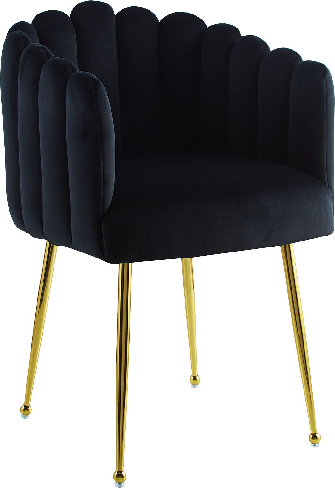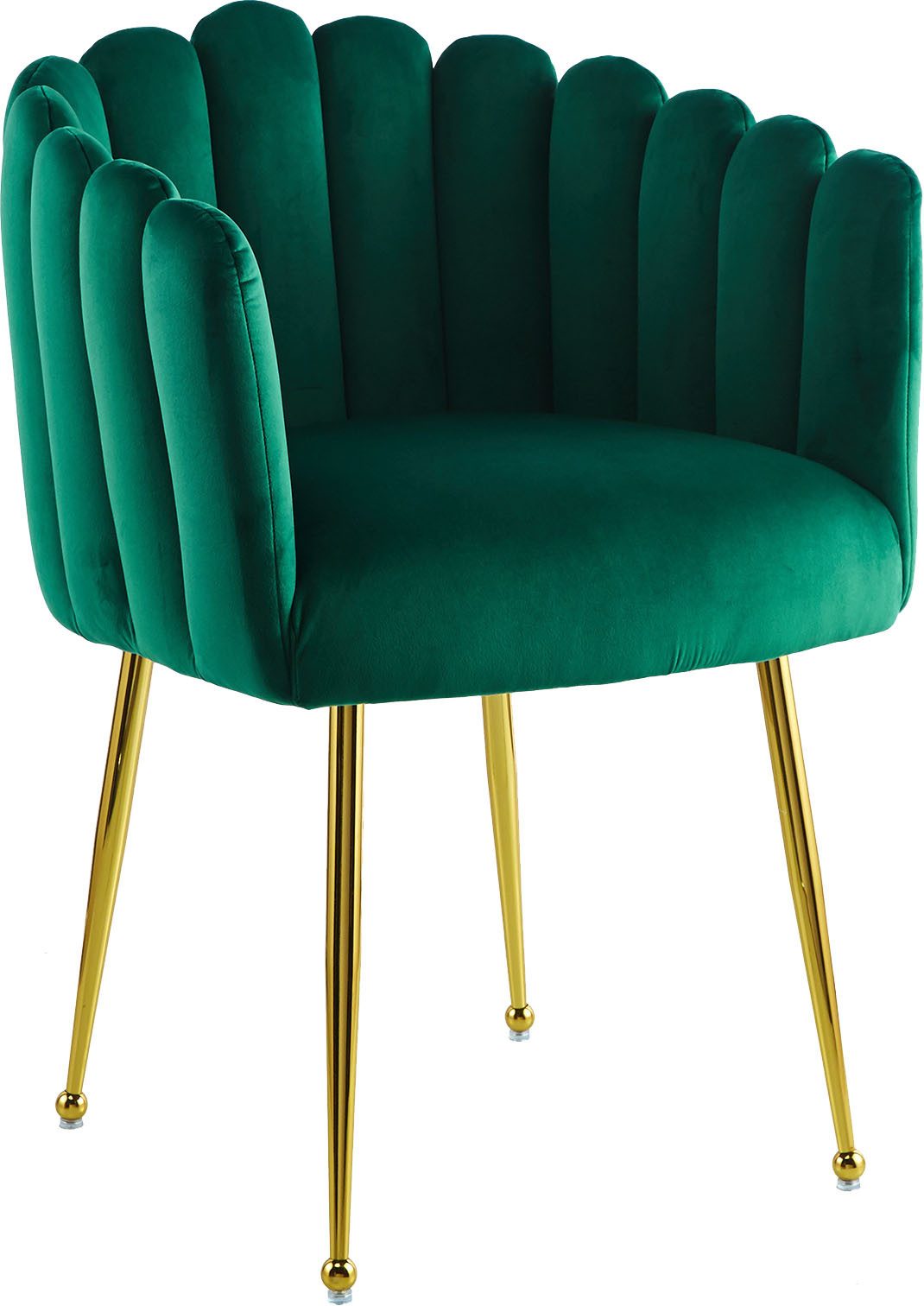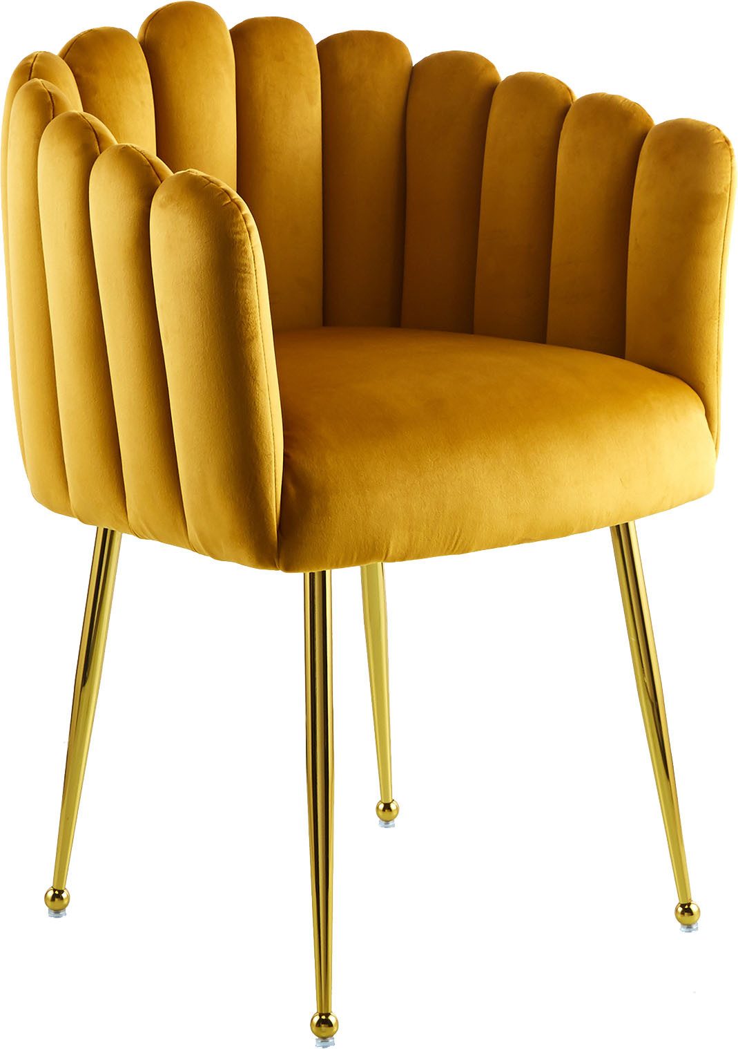 **Ausgefallener Design-Stuhl** Dieser aussergewöhnliche Stuhl bringt Luxus in Ihre vier Wände. Die elegante Sitzfläche in weichem Samt und die ausgefallene Metallbeine in Gold strahlen Glamour aus und werten jeden Wohnraum auf. Die schlichte Farbgebung lässt sich zeitlos in jeden Wohnstil integrieren. Den Glamour-Faktor können Sie durch die Kombination mit weiteren edlen Möbel oder Dekorationsobjekten noch verstärken und ein royales Gesamtbild kreieren. Für angenehmen Sitzkomfort sorgen das weiche, dicke Sitzpolster und die geschlossene und gewölbte Rückenlehne. Statten Sie Ihre Räume mit diesem edlen Stuhl aus und kombinieren Sie Gemütlichkeit mit Luxus.