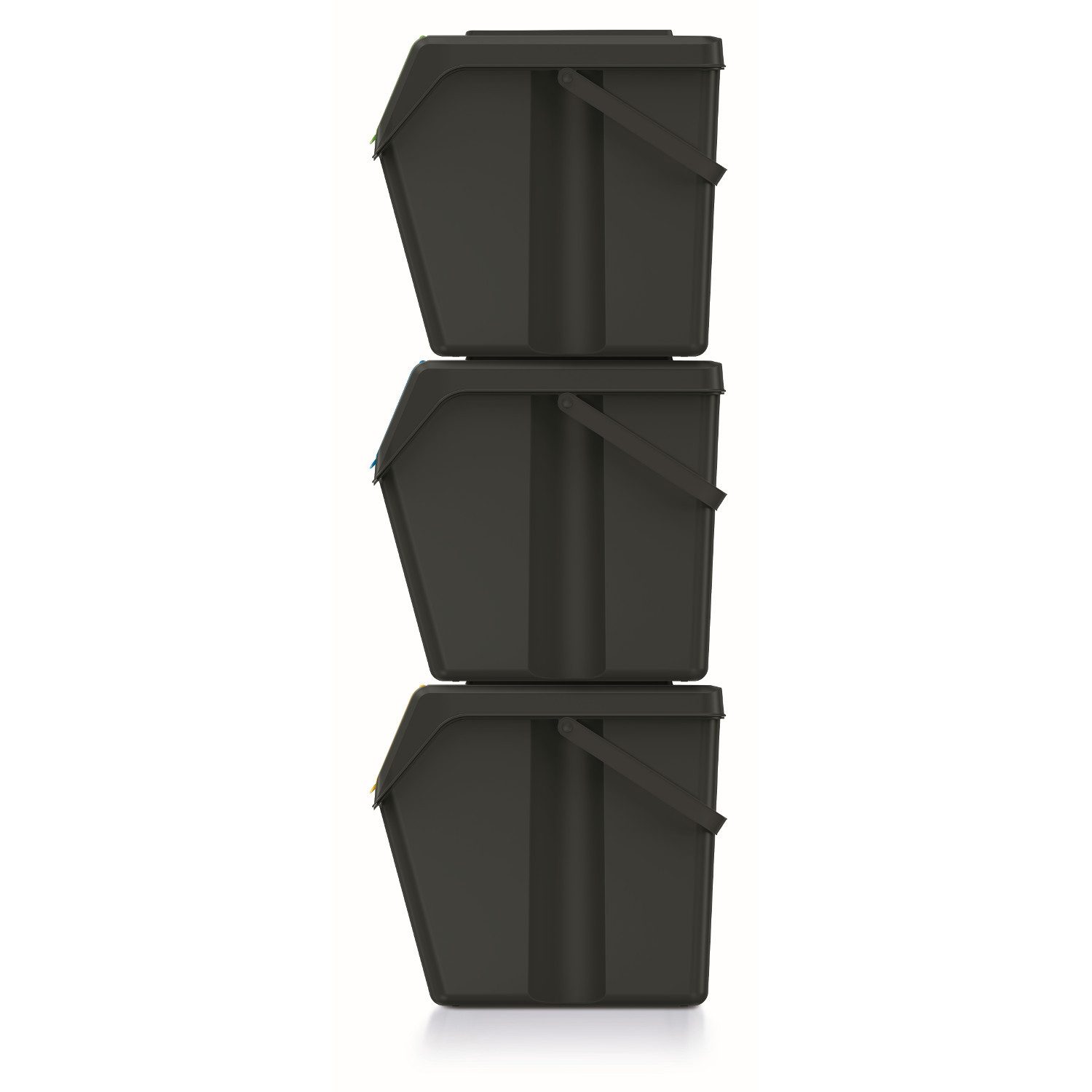 Die Sortibox ISWB25S3 ist ein Set aus drei 25-Liter-Körben mit einer Klappe an der Vorderseite des Deckels. Spezielle Reliefs in den Deckeln und Einkerbungen in den Körpern ermöglichen es, sie unabhängig von ihrer Размер in stabilen Reihen oder Stapeln zu stapeln. Das macht sie ideal für Bereiche mit begrenztem Platzangebot. Farbige Aufkleber, die an den Deckeln angebracht werden können, kennzeichnen die zu sortierenden Abfallarten.