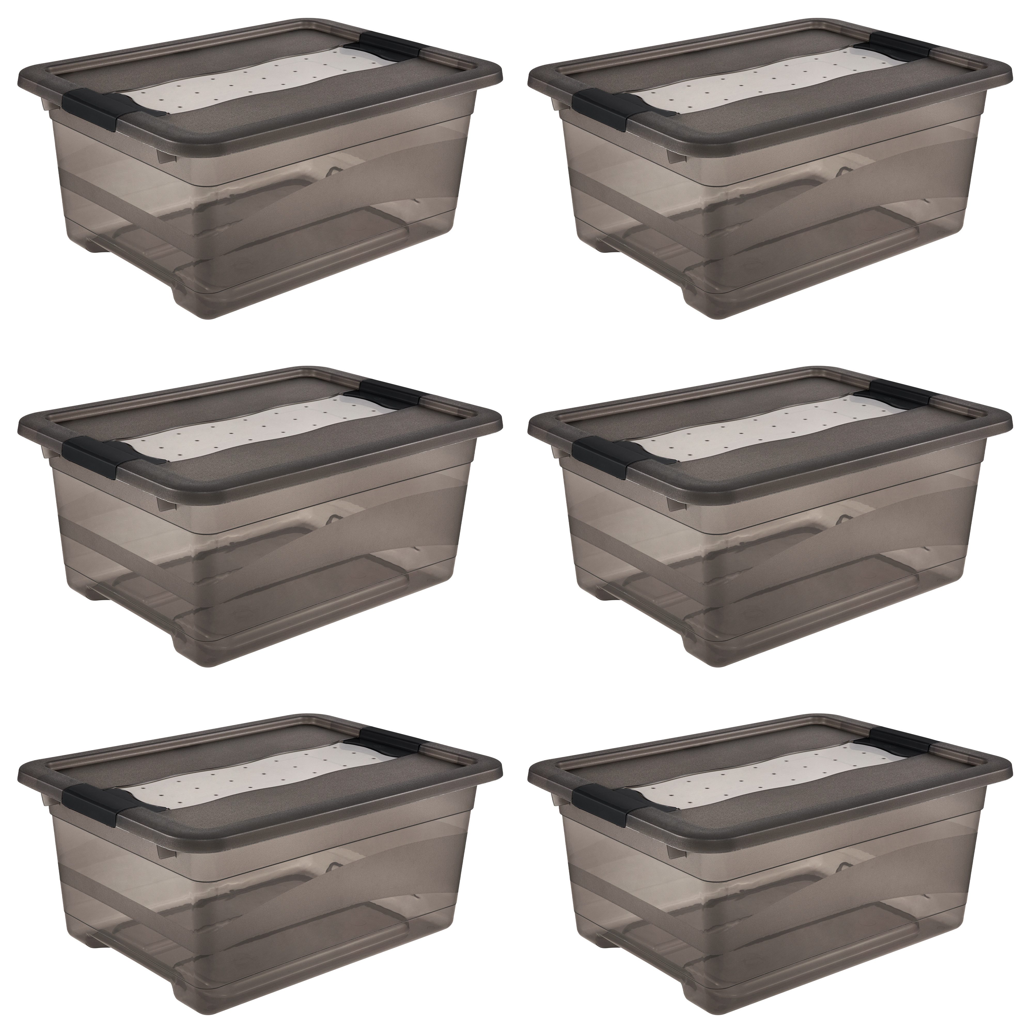 Set 6-teilig bestehend aus: 6x cornelia kristallbox 12L Für mehr Ordnung im Haushalt: Transparente Aufbewahrungsbox mit Deckel - Ideal zum Aufbewahren und Сортировка von Hobbyartikeln, Deko und anderen Kleinteilen - Zuverlässig verschließbar durch stabilen Deckel mit seitlichen Schiebeverschlüssen, Leichtes Wiederfinden von verstauten Dingen durch Einsichtmöglichkeit von allen Seiten - Sicheres Stapeln durch erhöhten Deckelrand, Unterteile und Deckel platzsparend ineinander nestbar, Montierte Boxen aufeinander stapelbar, Einfache Reinigung: Abwischen mit feuchtem Tuch oder Schwamm - Hergestellt in Europa - 10 Jahre Herstellergarantie, Hochwertiger, stabiler Kunststoff (PP) Produktdetails: - Deckel durch seitliche Clips verschließbar - Mit Griffen am Boden zum einfachen Herausziehen aus Schränken Lieferumfang: 6x Aufbewahrungsbox Cornelia, Maße (LxBxH): 39,5 x 29,5 x 17,5 cm, Fassungsvermögen: 12 l