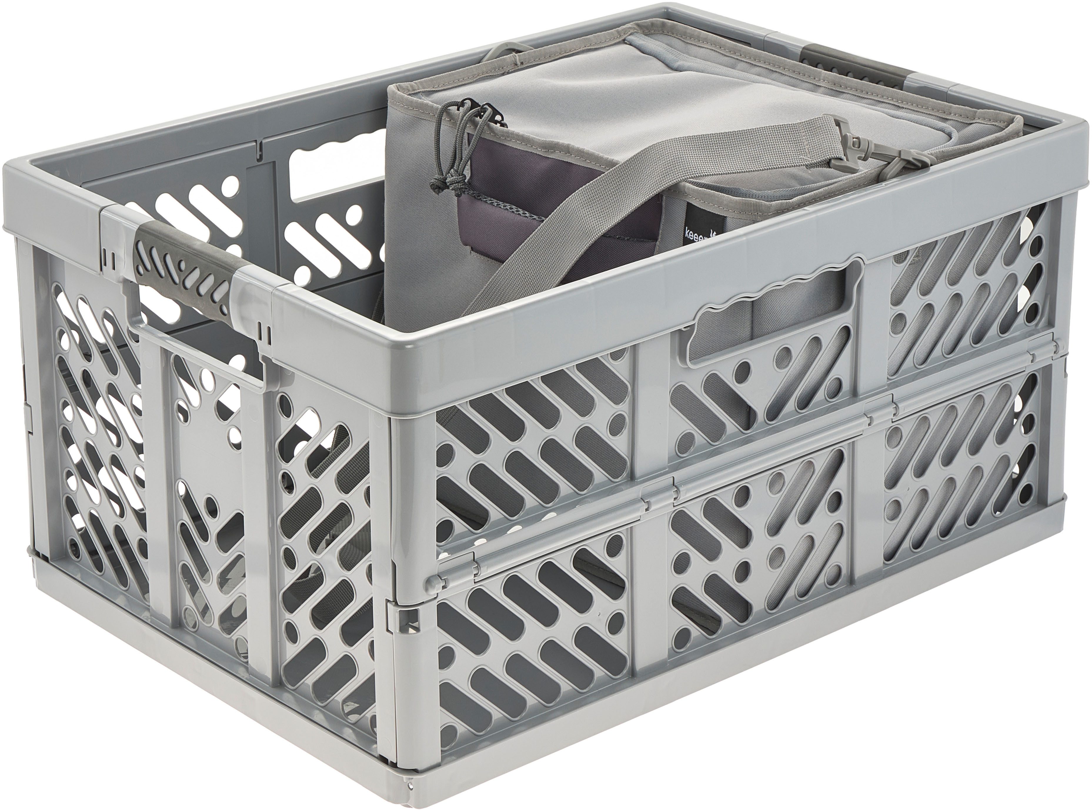 Set aus Klappbox ben 45 Liter und Isoliertasche neo 19 Liter, ideal zum Сортировка und Transportieren von Einkäufen, beide Artikel platzsparend zusammenfaltbar.
