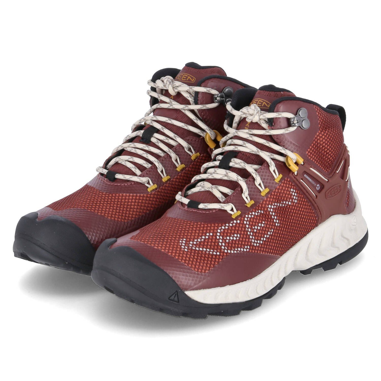 Keen Damen Outdoorschuhe/ Trekkingschuhe/ High Sneaker NXIS EVO MID WP Rot Textil-Synthetik-Mix - wasserfest, atmungsaktiv - verstärkter Zehen- und Fersenbereich - gepolsterter Einstieg mit Knöchelschutz - gelabelt - gepolstertes Wechselfußbett - flexible, rutschhemmende Laufsohle mit Zehenkappe - Anziehlasche