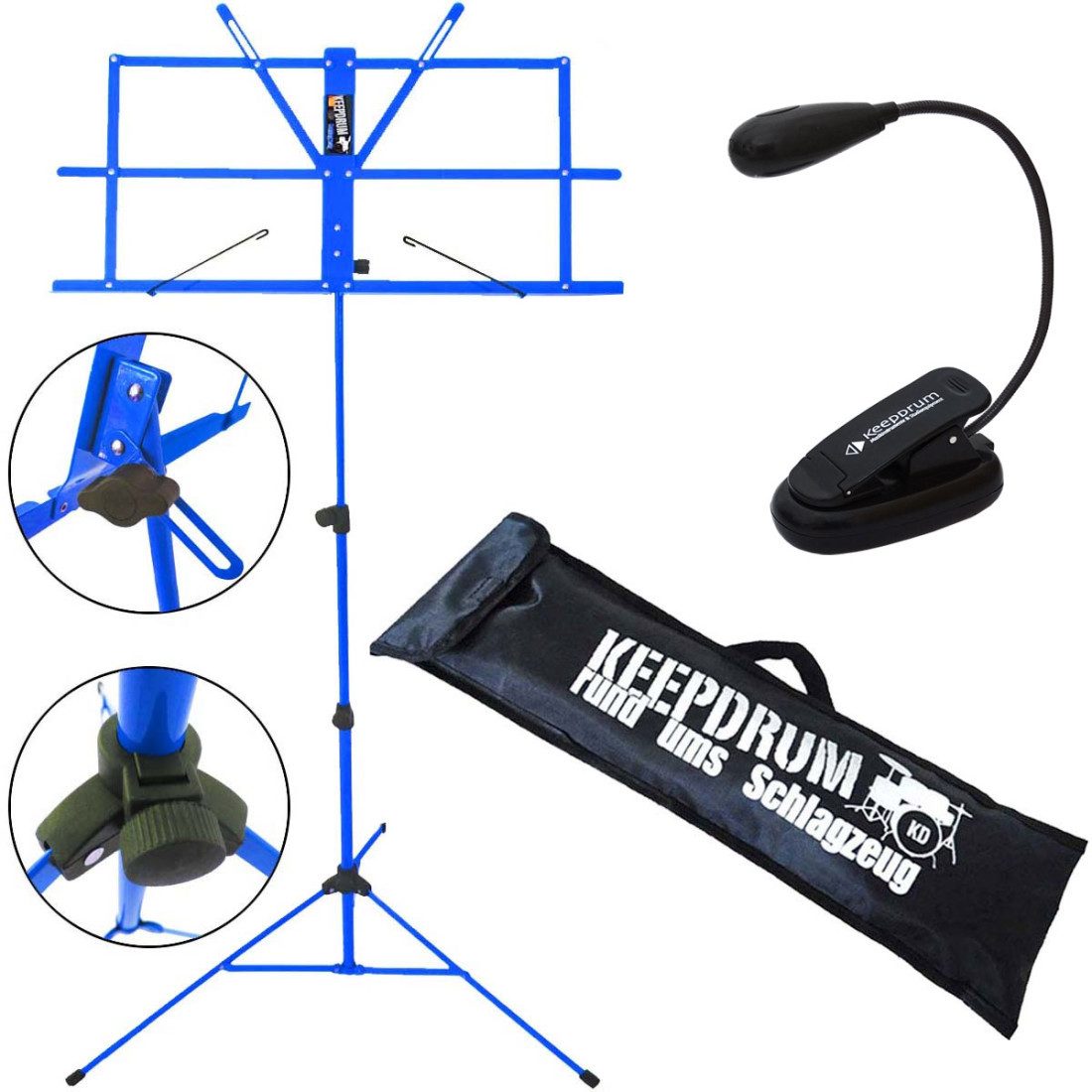 Die keepdrum Notenpult-Leuchte ist eine flexible LED-Lampe mit zwei Helligkeitsstufen, die durch ihre Halteklammer mit einem Handgriff befestigt werden kann.