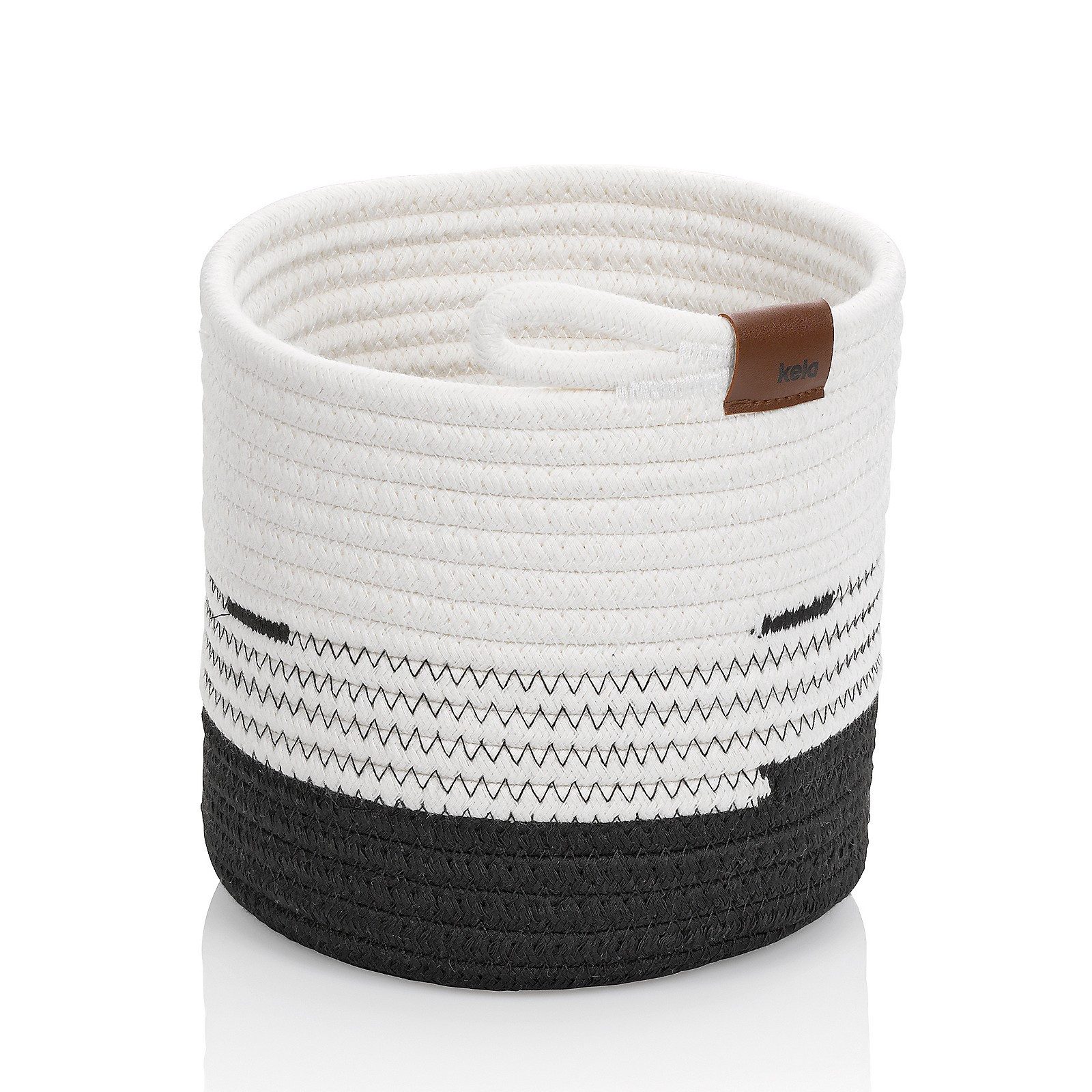 Da macht Ordnung halten und Aufräumen Spaß: Schwarz/Weißer Aufbewahrungskorb aus Mischfaser - aus der Serie Hedda von kela. Der vielseitig einsetzbare und robuste Korb in geflochtener Optik hat die Maße: 23 cm Ø und 20 cm hoch.