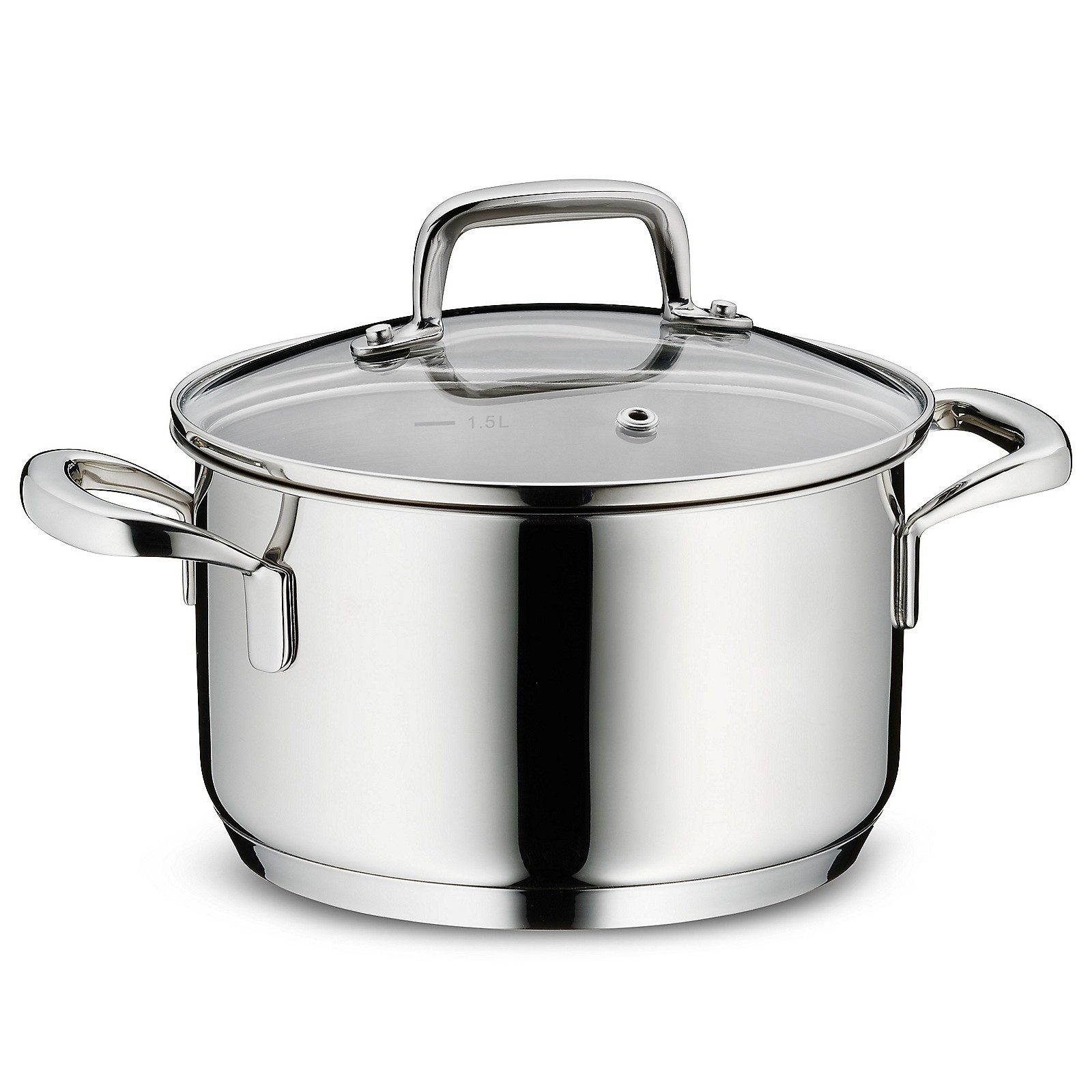 Fleischtopf Flavoria aus Edelstahl in glänzender Optik Dieser hochwertig verarbeitete Topf glänzt nicht nur optisch, sondern bietet eine ganze Reihe nützlicher Eigenschaften. Die praktische Innenskalierung, ein Glasdeckel mit Dampfauslassventil und ein Energiesparboden bieten definitiv einen Mehrwert. Geeignet ist dieses Kochaccessoire für alle Herdarten! Fleischtopf Flavoria 5,5 Liter mit 24 cm Durchmesser.