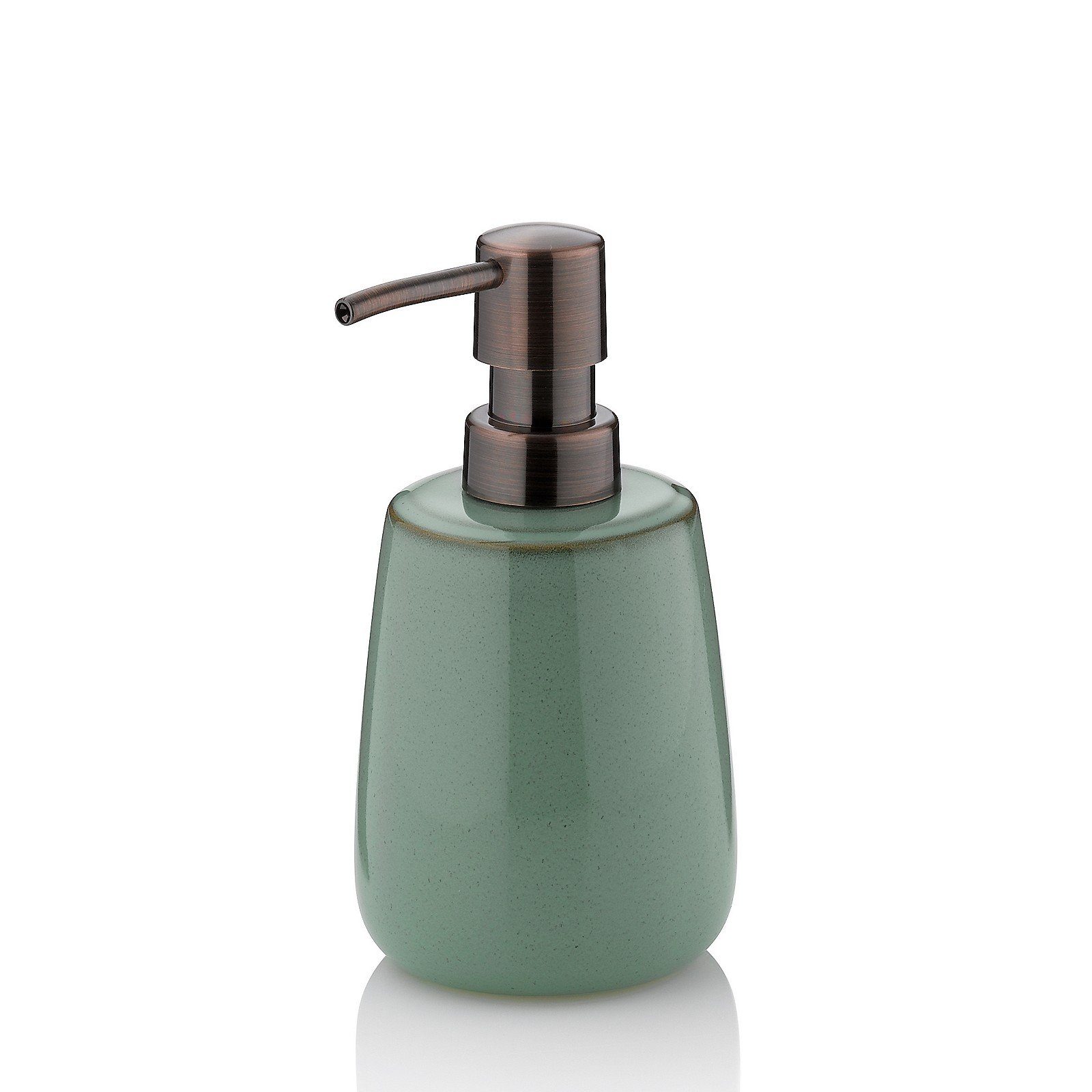 Seifenspender Liana - gedämpfte, triste, herbstliche Farben für Ihr Badezimmer. Dieser Seifenspender mit den Maßen Ø 8,0 cm, Höhe 15,0 cm besteht aus Keramik und fasst 300 ml Seife.
