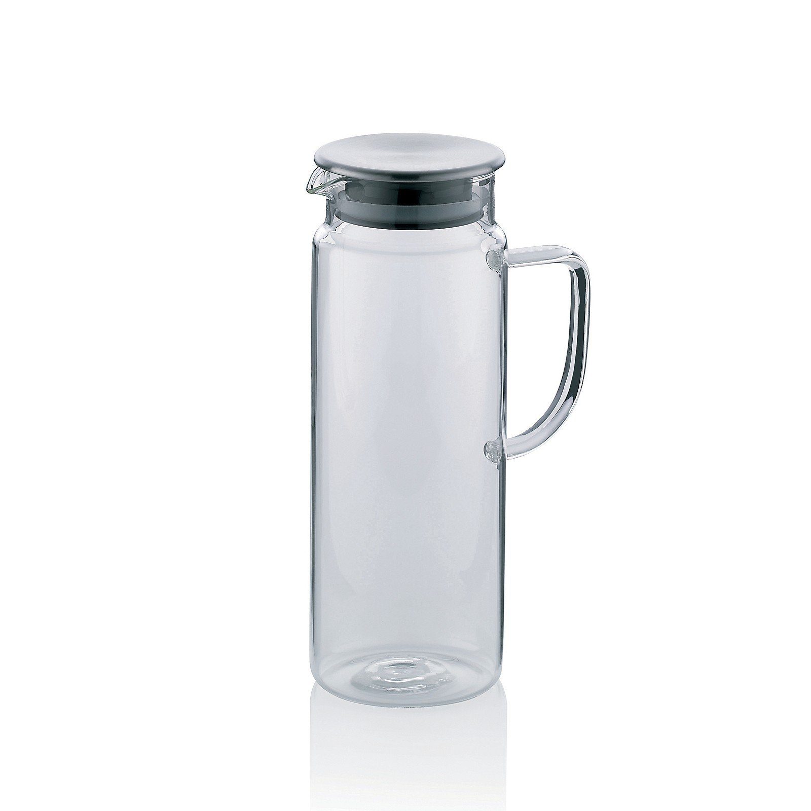 Der ideale Saftkrug, um Säfte stilvoll am Tisch zu servieren. Gibt es bei Ihnen vielleicht sogar das Ritual, dass Säfte am Wochenende frisch gepresst werden? Auch diese lassen sich in diesem Glaskrug bestens aufbewahren. Oder Sie verpassen Wasser einen Vitaminschub mit frischer Zitrone, Kräuterzweigen oder auch kleinen Ingwerscheiben. Der Saftkrug besteht aus hochwertigem Borosilikatglas, daher eignet er sich auch für heiße Getränke. Der Deckel aus Edelstahl besitzt eine Ausgießöffnung, sodass der Deckel zum Befüllen der Gläser nicht abgenommen werden muss. Und noch ein kleines Plus: der Saftkrug passt perfekt in handelsübliche Kühlschranktüren. Den Saftkrug Pitcher von Kela gibt es mit einem Fassungsvermögen von 1 l in zwei verschiedenen Formen und einer Варианты mit 1,6 l Fassungsvermögen. Wählen Sie selbst.