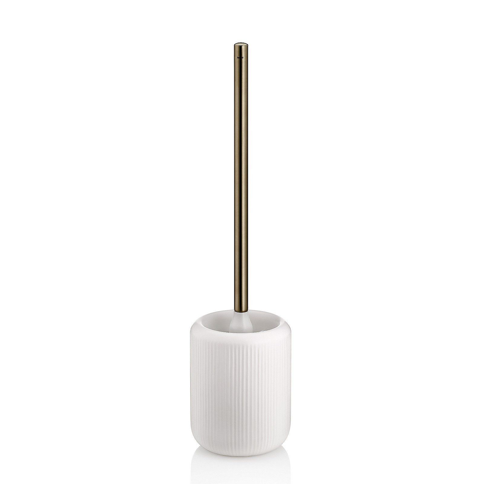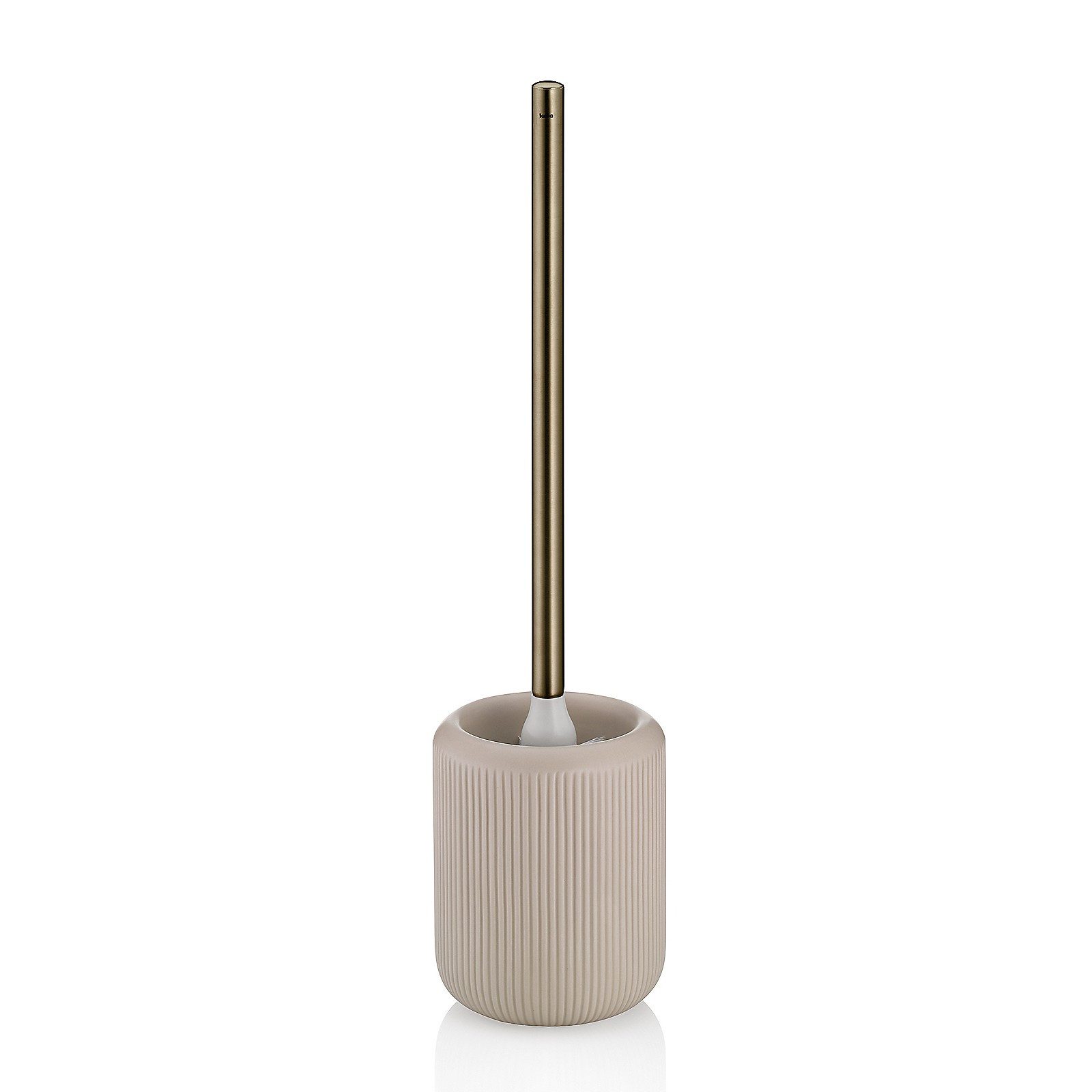 ist mit ihrer Rillenstruktur, die eine sanfte Haptik bietet, ein schönes Bad-Accessoire für nahezu jedes Badezimmer. Ihr Gold verchromter Bürstenstiel lässt diese WC-Garnitur edel erscheinen.