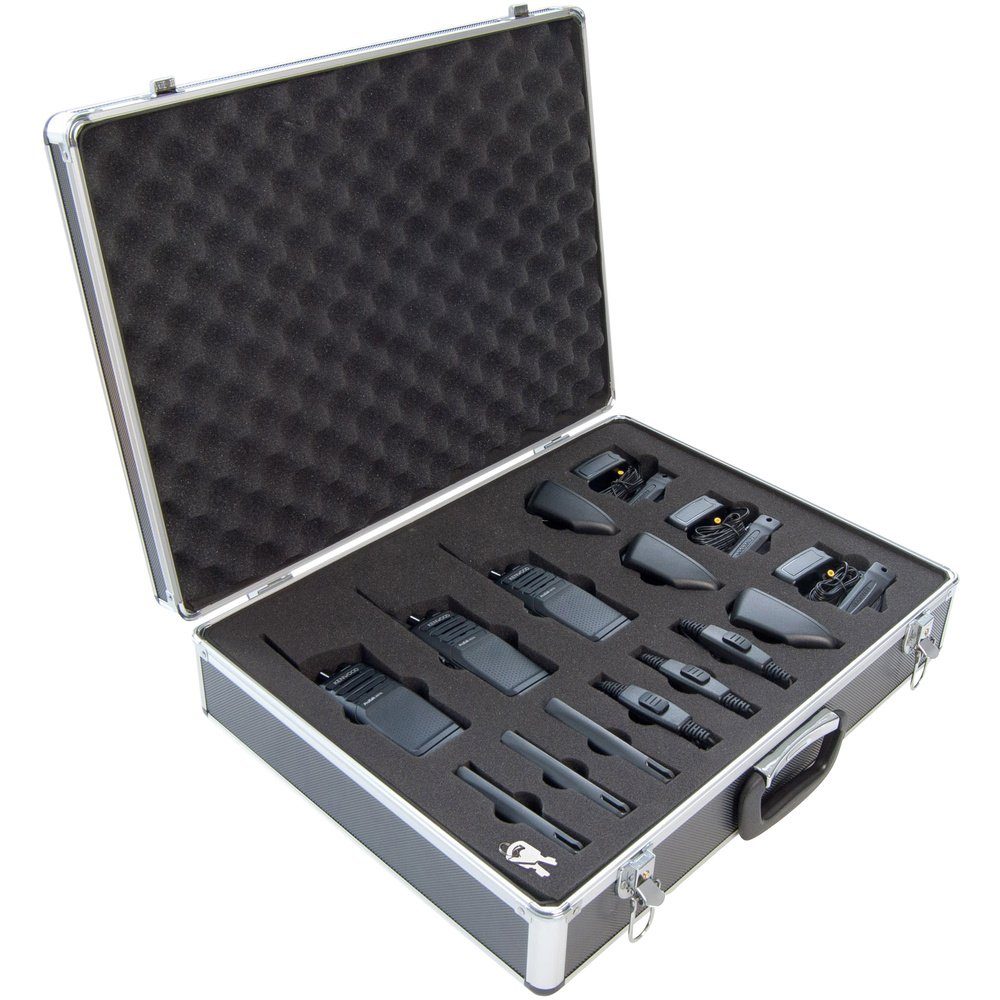 Je 3x · TK-3701D · Standladegerät · Clip · Akku · Anleitung + 1x Transportkoffer