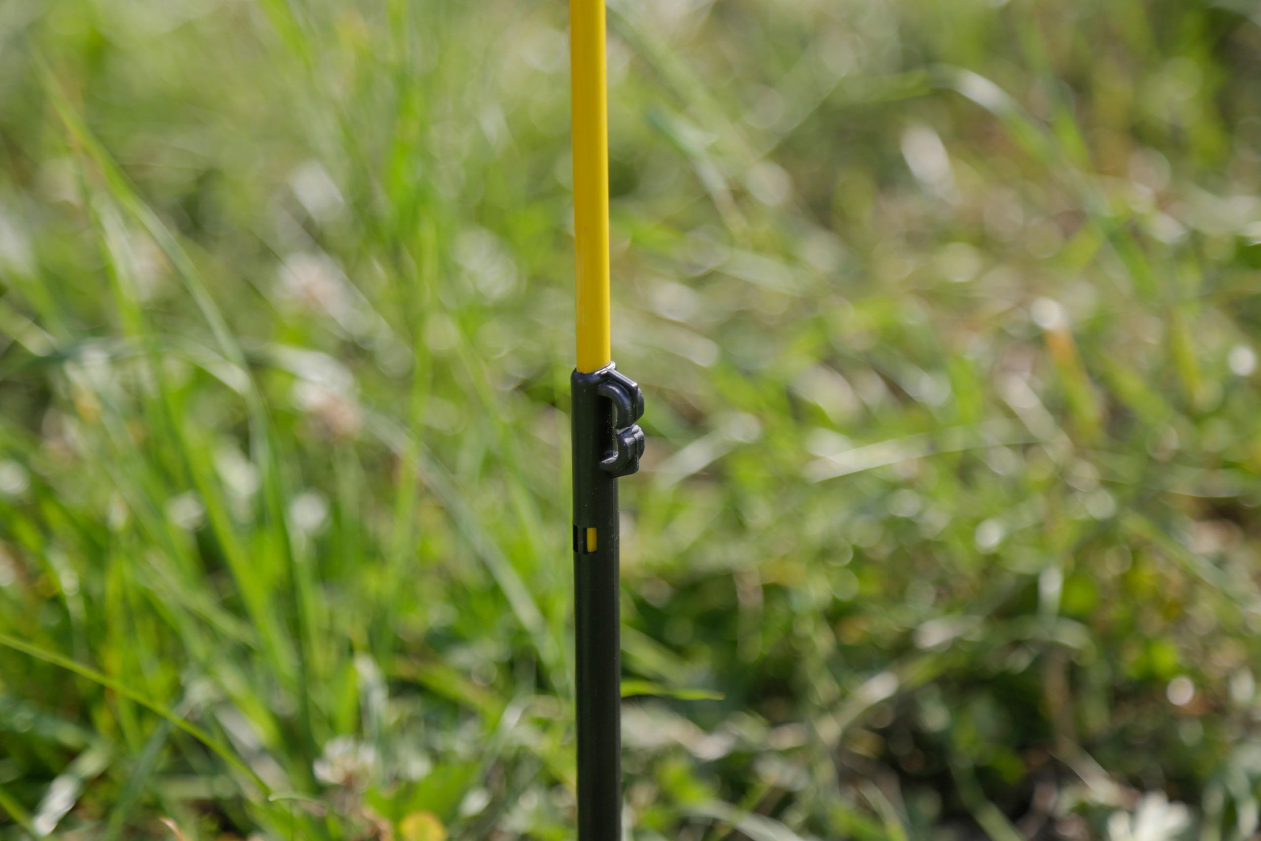 Mit einer Длина von 106 cm und einer 18 cm langen Metallspitze lassen sich die Pfähle schnell und einfach im Boden verankern. Der Kopfisolator mit Metallöse ist ideal für Litzen, Draht und Bänder bis 20 mm Breite geeignet.
