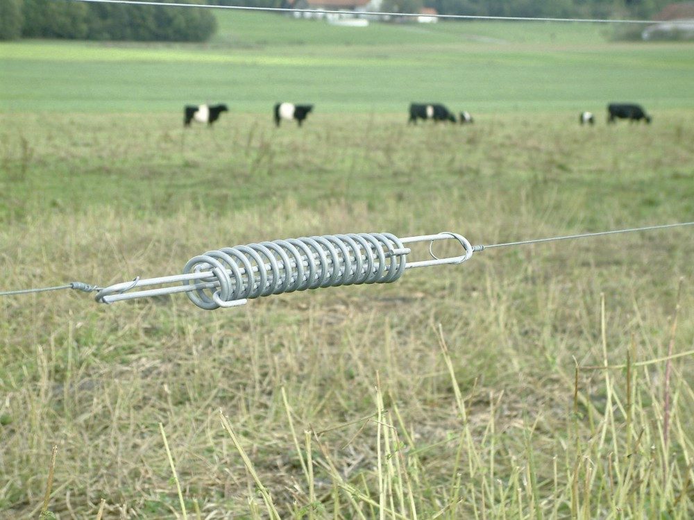 Die Temperaturausgleichsfeder ist ein unverzichtbares Zubehör für dauerhafte und stabile Weidezaunanlagen. Sie sorgt dafür, dass sich der Zaun bei Temperaturschwankungen automatisch ausdehnt oder zusammenzieht und damit dauerhaft elastisch und spannungsstabil bleibt.