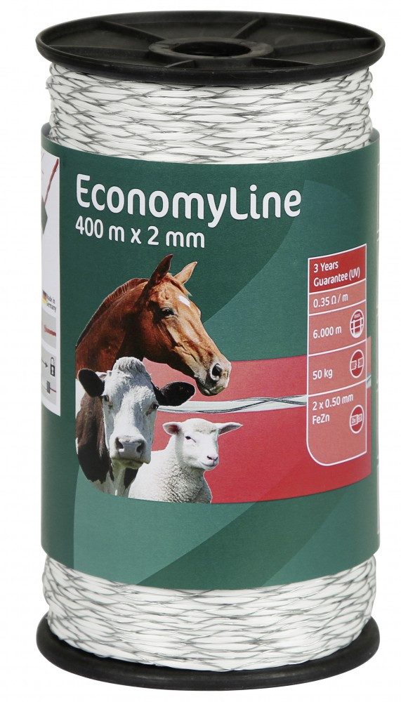Die EconomyLine Litze bietet eine kosteneffiziente und zuverlässige Lösung für Weidezaunanlagen. Mit ihrer robusten Verarbeitung, guten Sichtbarkeit und hoher Leitfähigkeit ist sie ideal für mittlere bis lange Zaunanlagen.