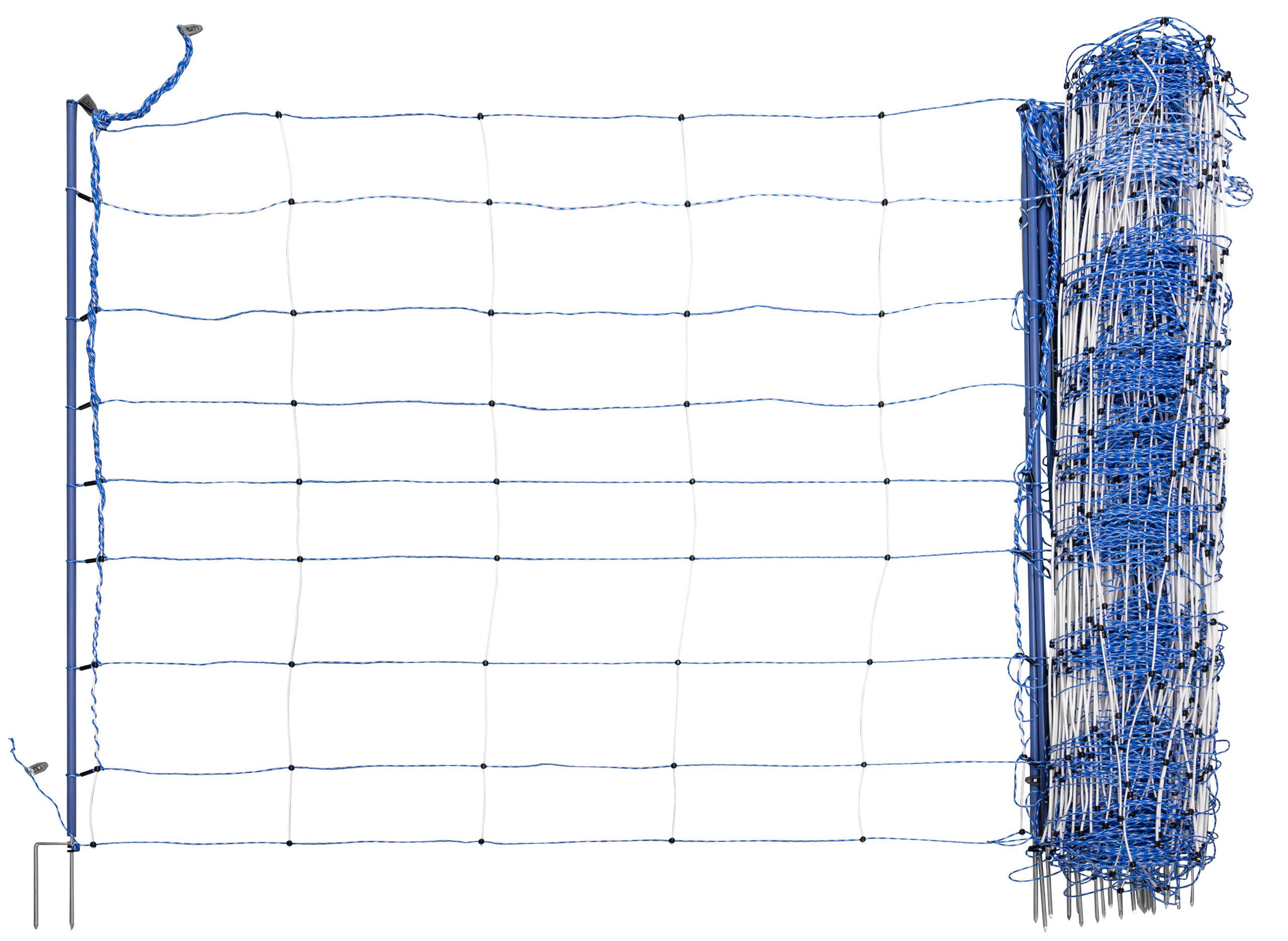 Die geflechteten Litzen mit Edelstahl- und Kupferleitern sorgen für hohe Zugfestigkeit und Langlebigkeit. Das Leitermaterial verläuft kontinuierlich an der Außenseite und garantiert optimalen Kontakt bei jeder Tierberührung. Dank der stabilen Vertikalstreben alle 30 cm bleibt das Netz auch auf unebenem Gelände perfekt aufrecht.