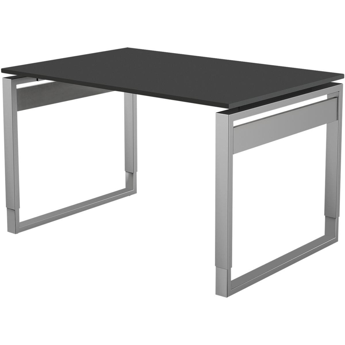 Schreibtisch »Stage One« 120 cm Bügel-Fuß, Ausführung: Bügel-Fuß Gestell in alusilber, mit Hebeplatte, melaminharzbeschichtete Oberflächen, mit ABS-Kanten, Plattenstärke: 19 mm, mit Kabelkanal, höhenverstellbar von 68 bis 82 cm
