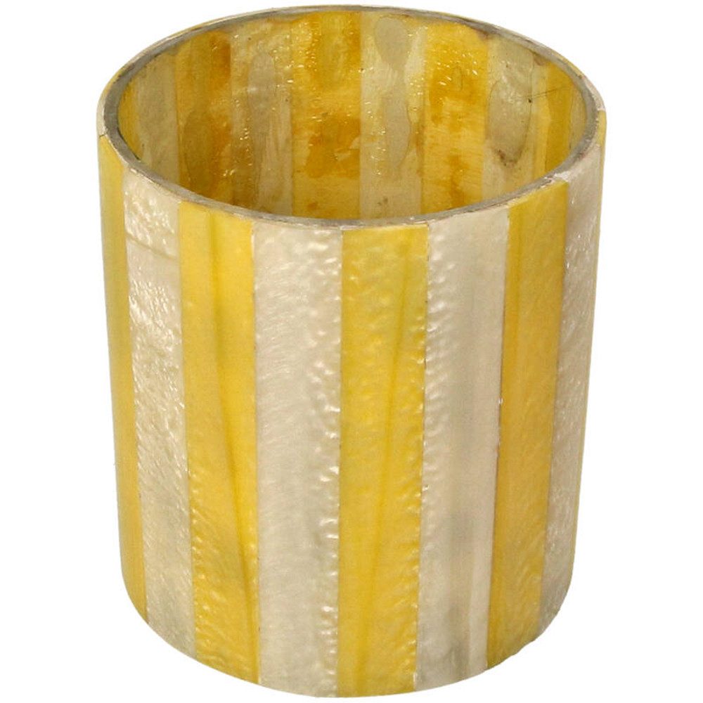 Windlicht Kerzenhalter STRIPES gelb creme, Ø10x12cm